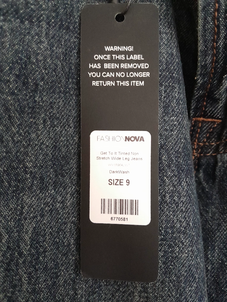 Dark wash denim jeans. Wide leg style. Size 9. Patchwork design. Perfect for a relaxed and cozy look. Never been worn before.