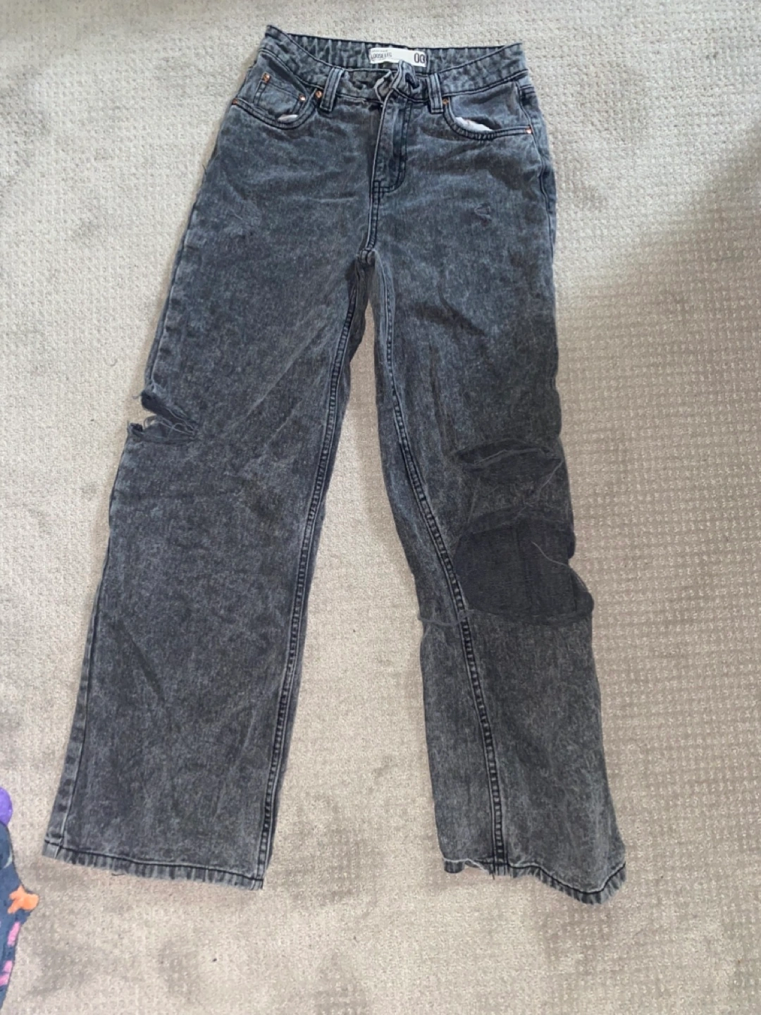 34Made from a grey-wash denim fabric. Features pockets and a button closure. Would be great for a day spent lounging.
