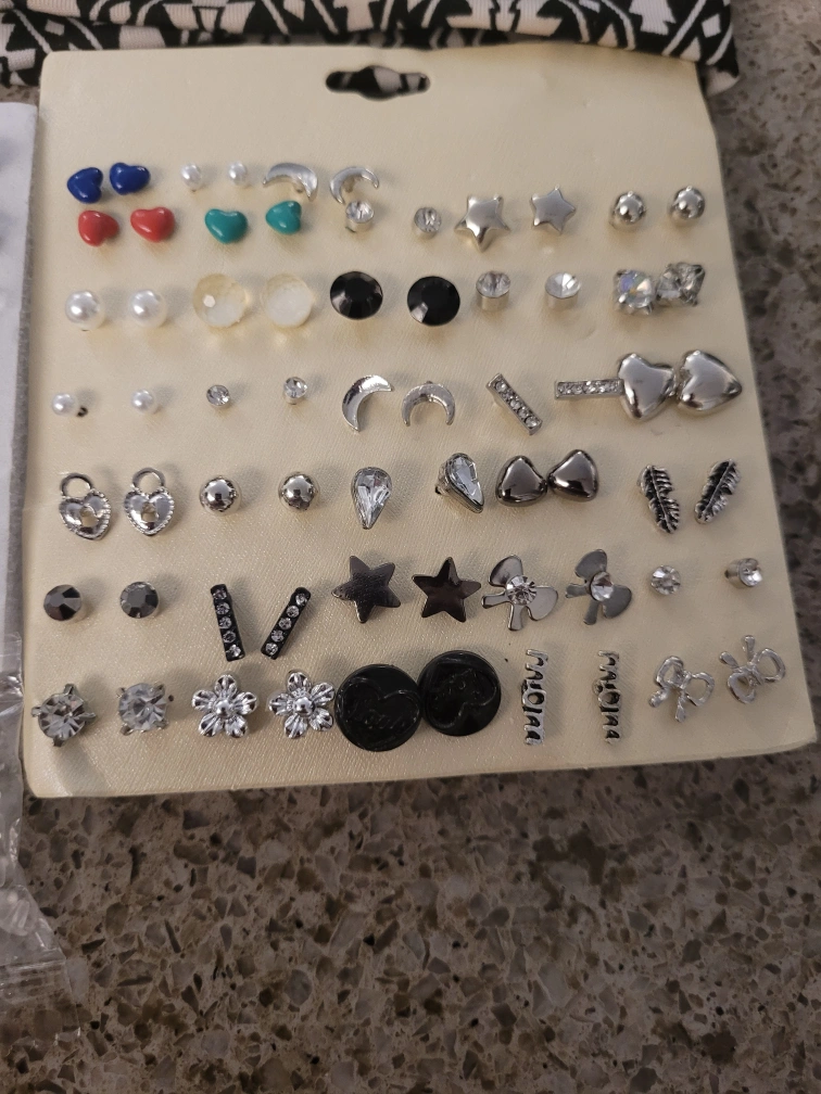 TWO display cards of earrings and a few headbands. The earrings are BRAND NEW !!! Headbands appear to have different patterns in very good condition.WASHED ! These items can be used to add a pop of flair to any outfit.