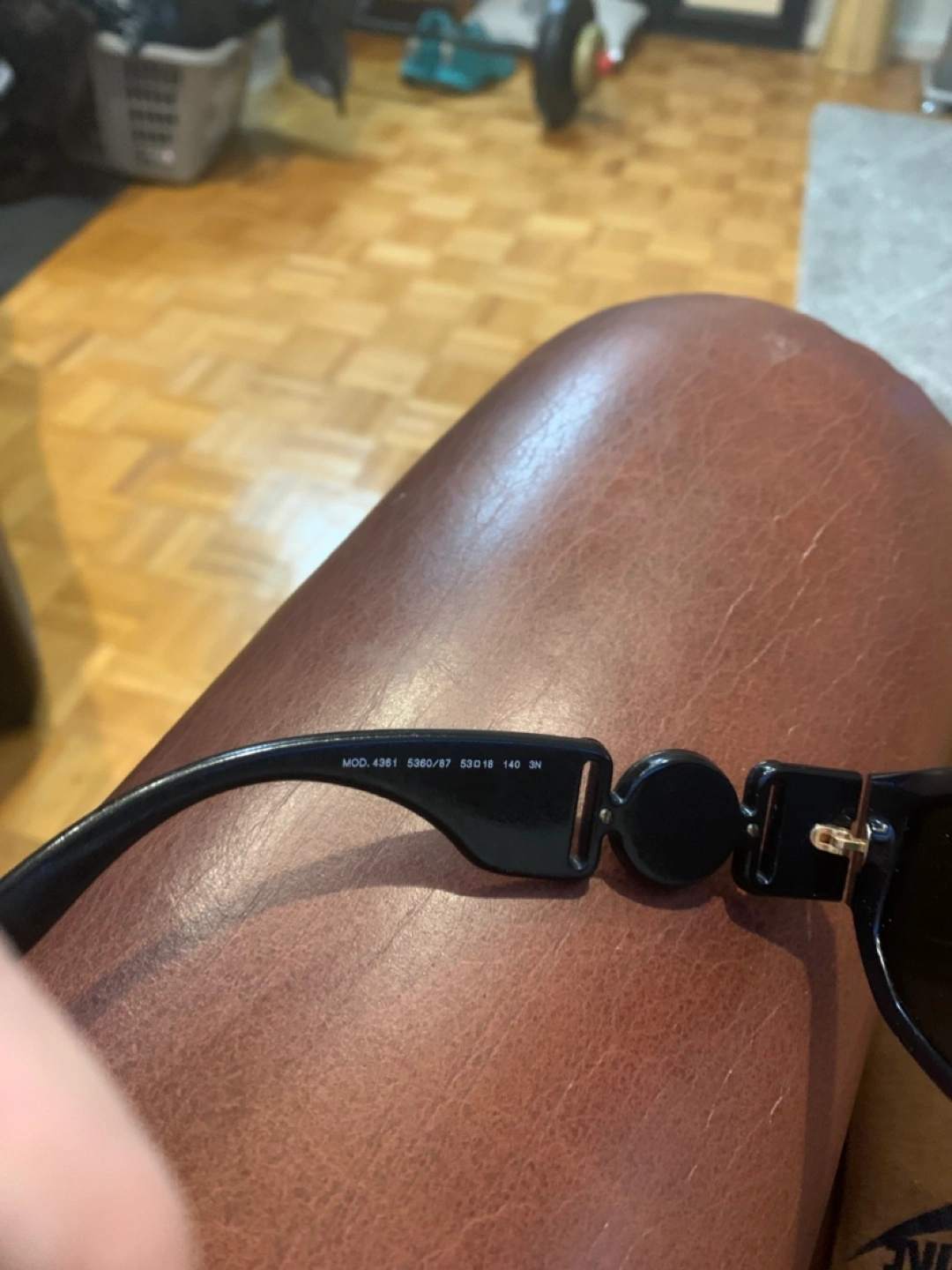 Versace sunglasses in a classic black color. The front showcases a striking emblem, and the arms have the brand name. These sunglasses can elevate your look, making any day feel luxurious.