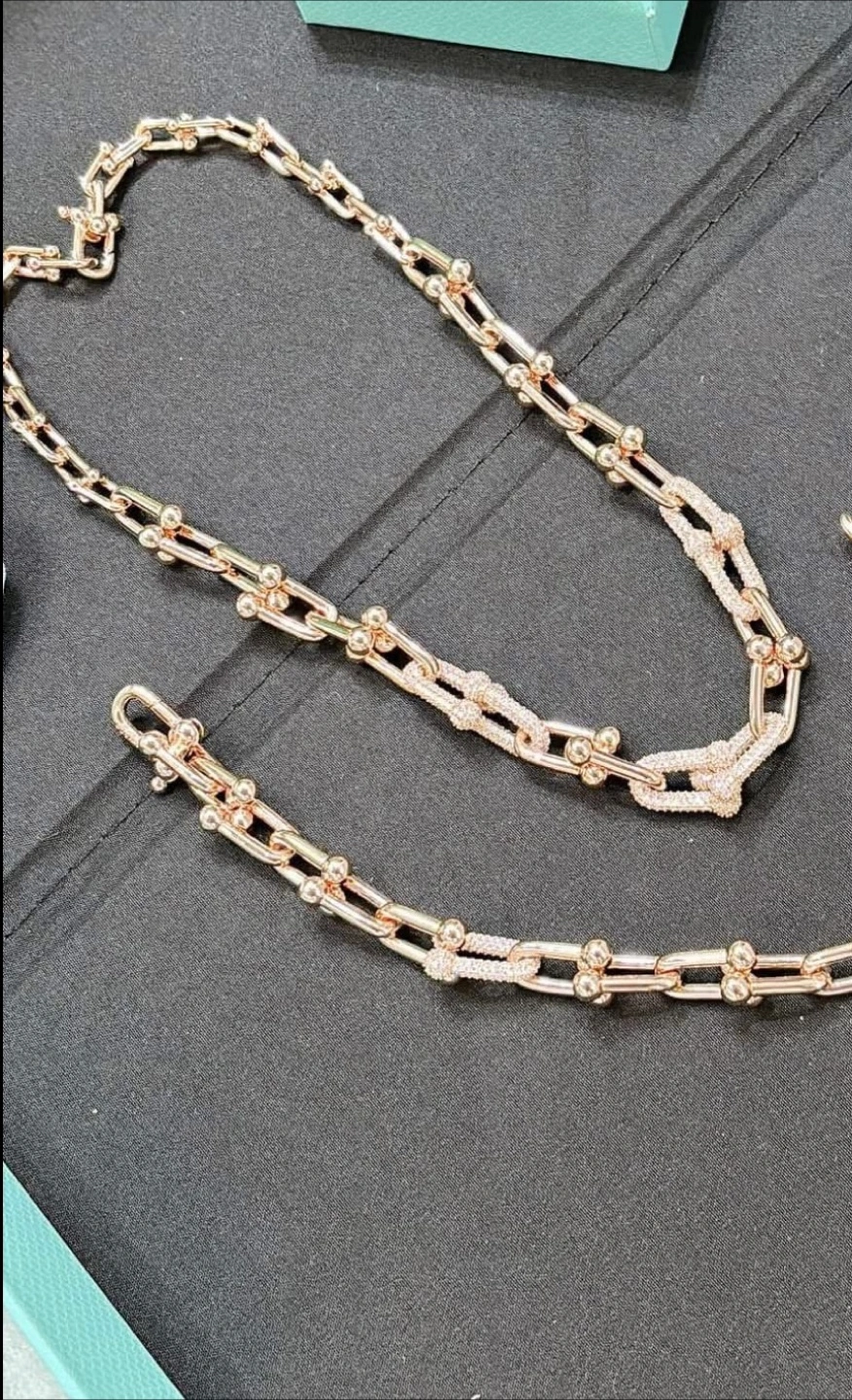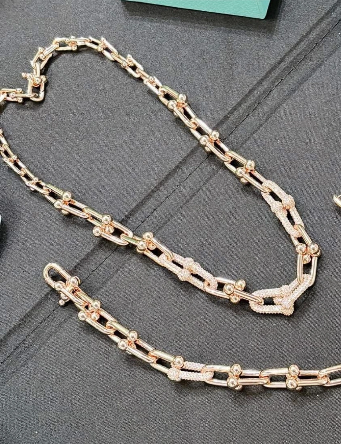 An eye-catching Statement necklace. Featuring beautiful gold links with sparkling accents. This elegant necklace is great for adding a touch of sophistication to any ensemble.
