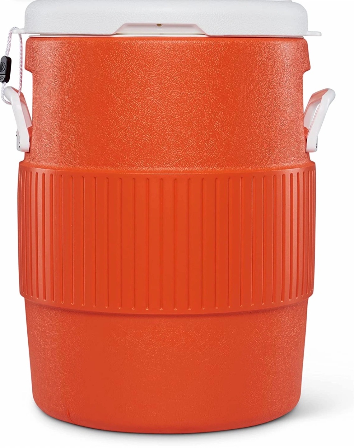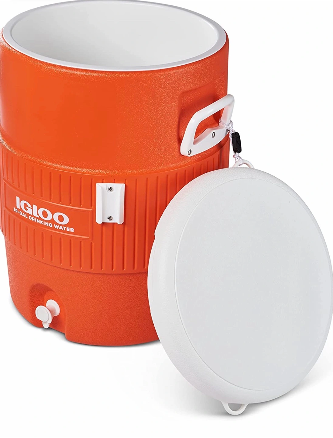 Igloo 5-Gallon Heavy Duty Seat Top Portable Sports Cooler Water Beverage Dispenser - Orange. Good for use with the entire team on the jobsite or on the field, in schools, gym, at parks or in the home. The cooler will retain ice for 3-days at 90° .