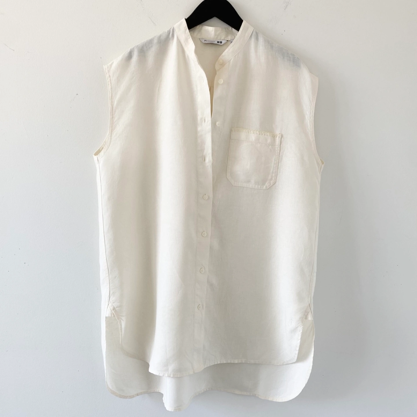 615Pick up only in Leslieville (Queen and Pape) Check out other listings! Uniqlo X JW Anderson sleeveless long shirt. Features a stand collar, accented by pocket stitching and JW Anderson log embroidery. Made of lightweight 100% linen. There's no staining, snags or damage. It's clean and in excellent condition. Size XL Approximate measurements laid flat Shoulder 20.25” Pit to pit 24.75” Center back length 35”