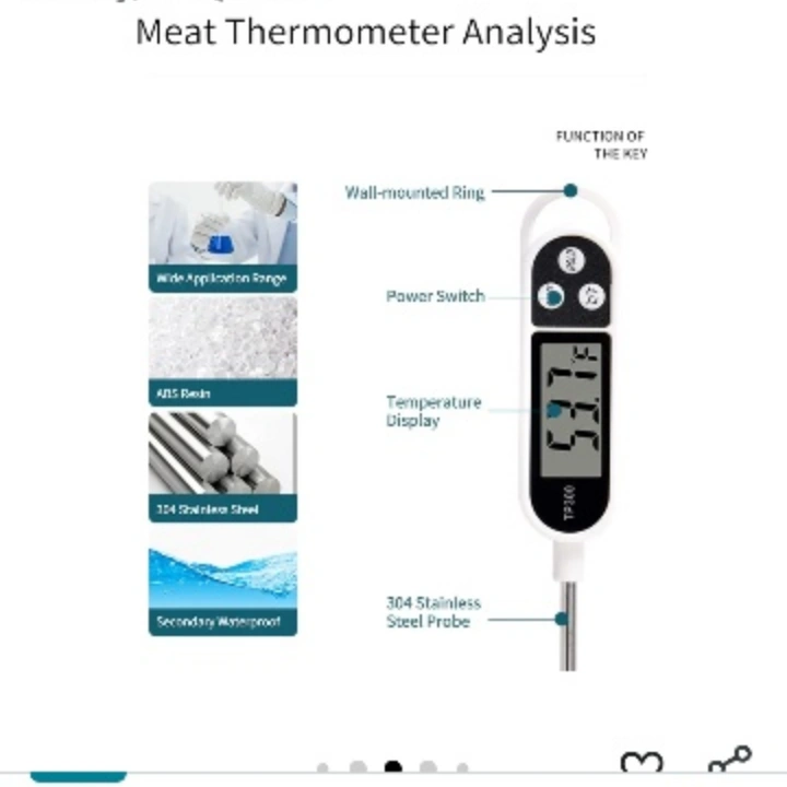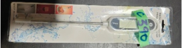 87Digital food thermometer. Features a long probe with a digital display. Great for checking the temperature of your food so you can be sure it is cooked safely. great unit last up to 2 years
