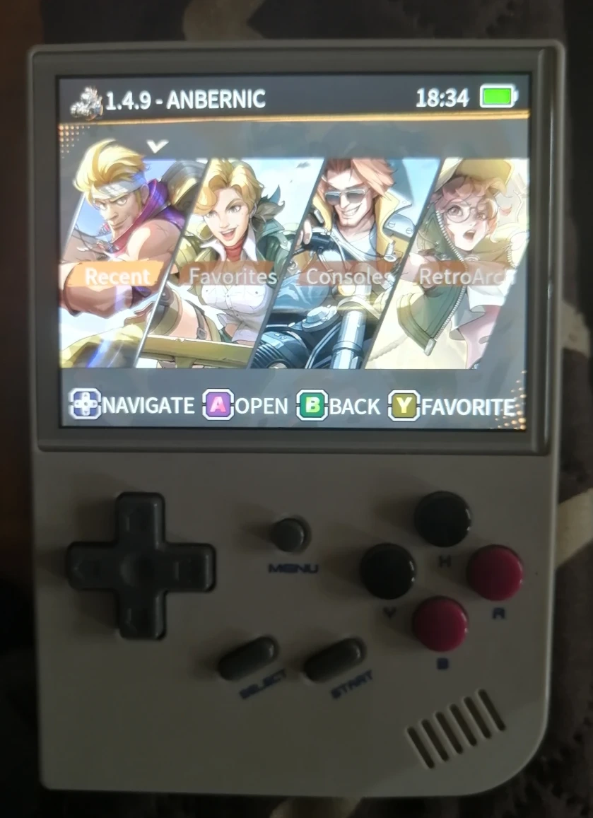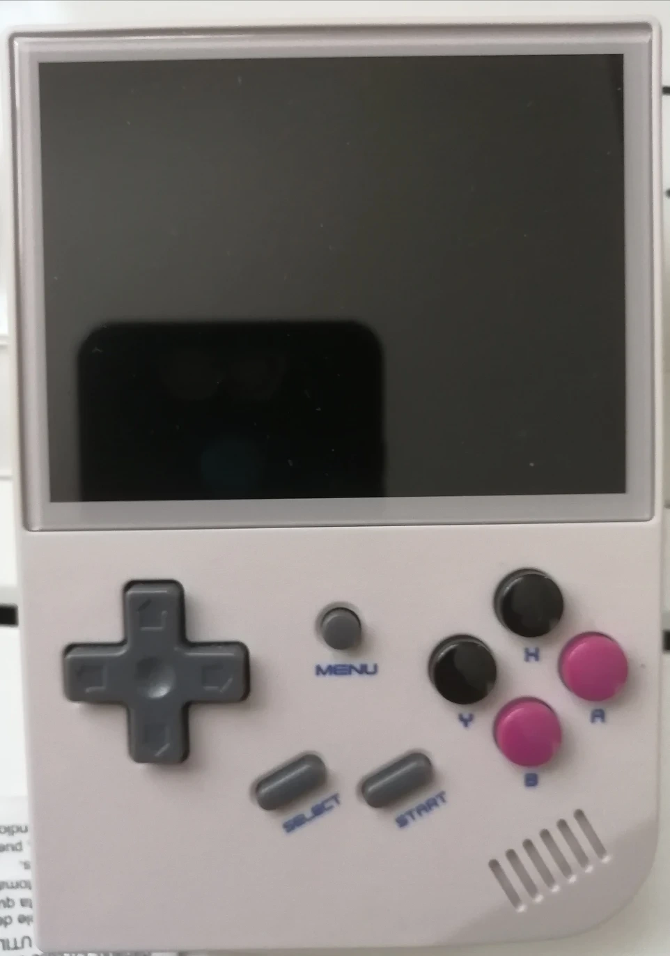 Features a small screen and multiple buttons. The device is coloured in white and grey. Enjoy your favorite games at your leisure.