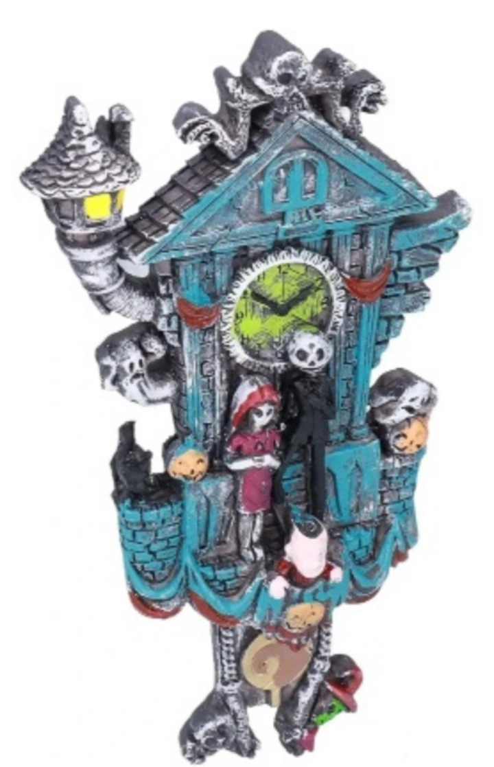 89Themed wall clock. Made to look like a haunted house. Features several characters and a clock face. A lovely addition to any space that needs a touch of spookiness.
