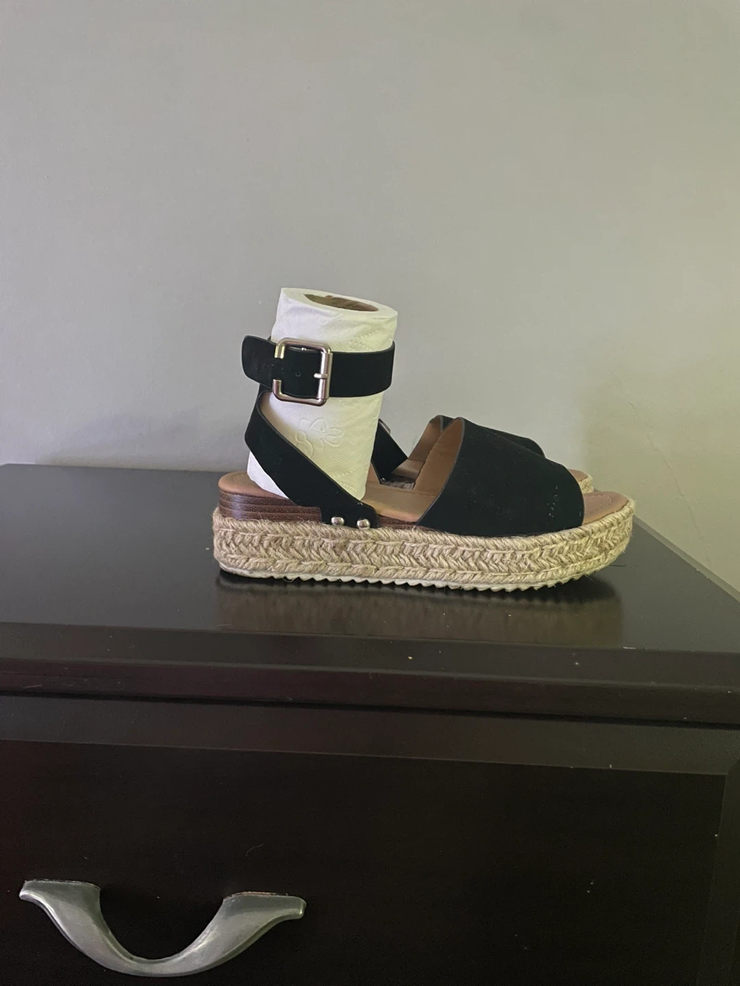 Cute black espadrille platform sandals! They're in great condition and would be a lovely addition to your summer wardrobe. Pick up only. Cash only.
