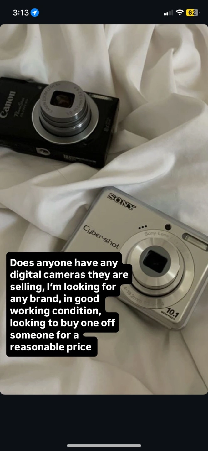 Buy & SellLooking for Digital CamerasLooking for Digital CamerasFreeLooking to buy a digital camera, dm me if you have oneWHERE TO MEET699 Pape AveView MapSELLEREllaDanforth E York44252 reviews3 chats·1 favorites·130 views