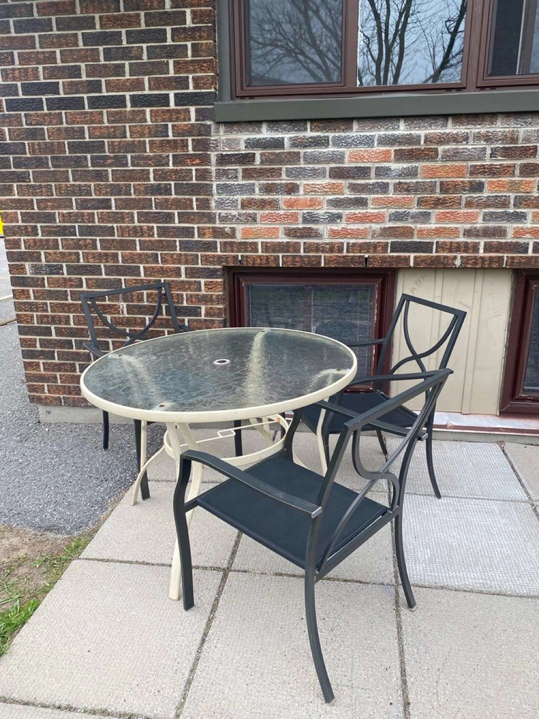 Patio set with round table and chairs