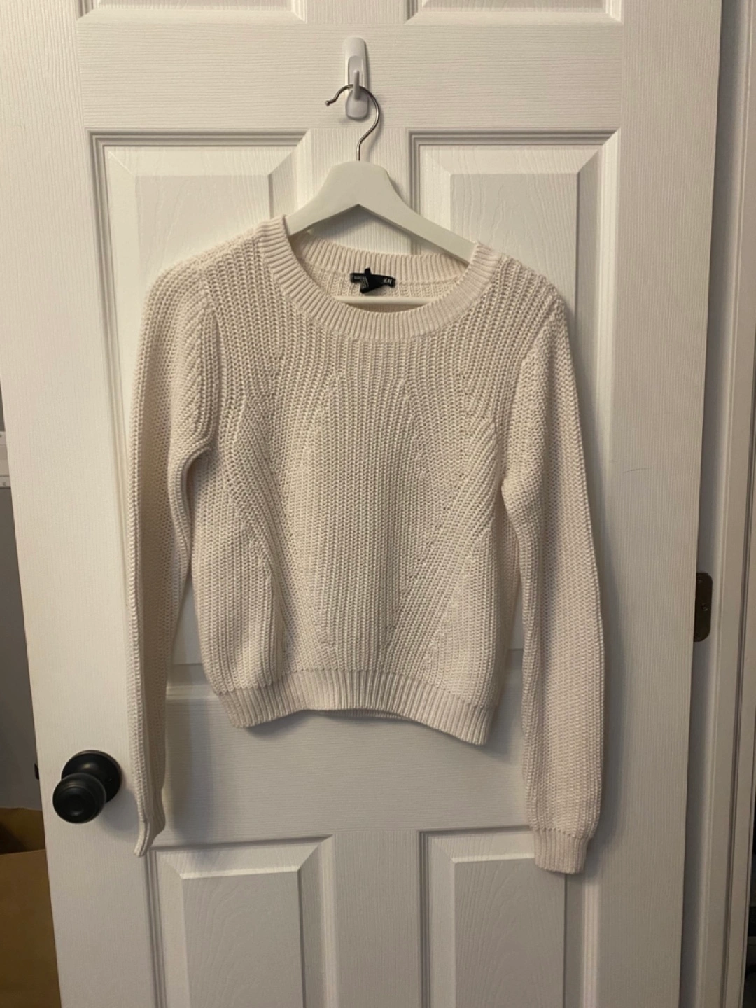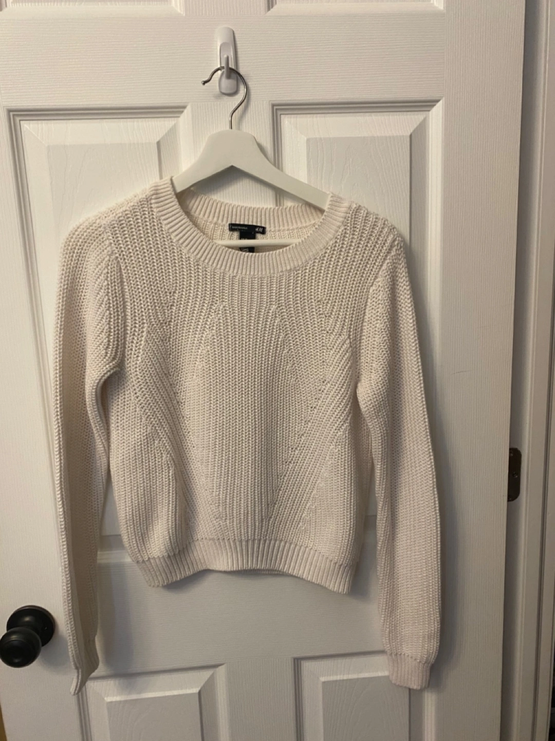 Sweater in a cream colour. Has long sleeves. Features a rounded neckline. A perfect choice for lounging around the house on a relaxed day.