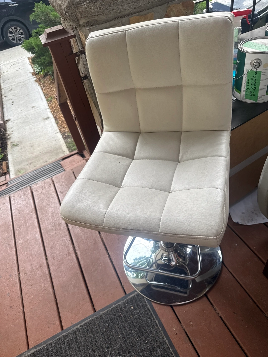 A chic white stool. Features a padded seat and a shiny, chrome base. You can easily elevate your space with this piece.level not only working