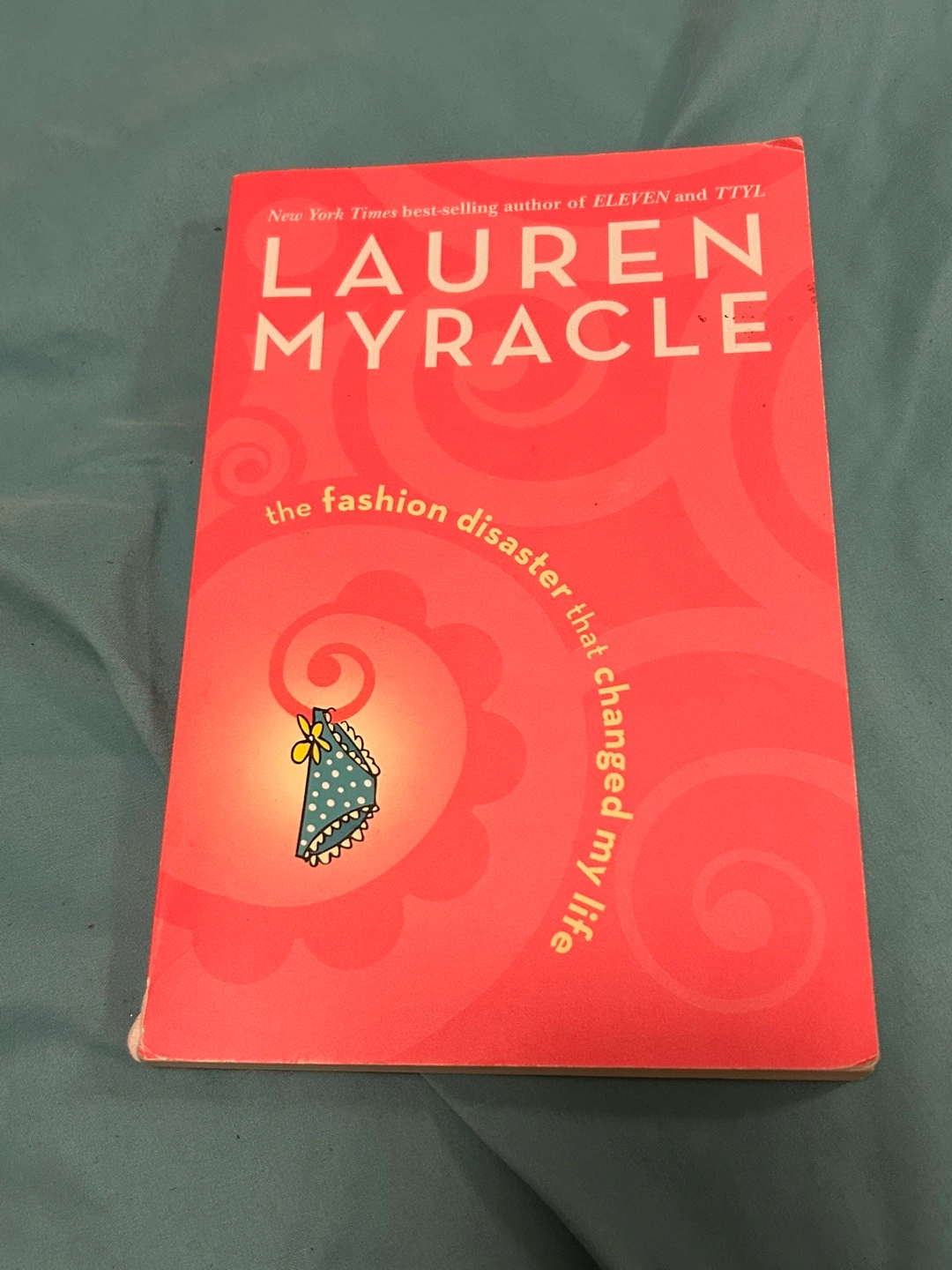 A paperback book with the title “The Fashion Disaster That Changed My Life”. It's written by Lauren Myracle, and is a New York Times best-selling author. It makes for a fantastic read for a nice, quiet evening.