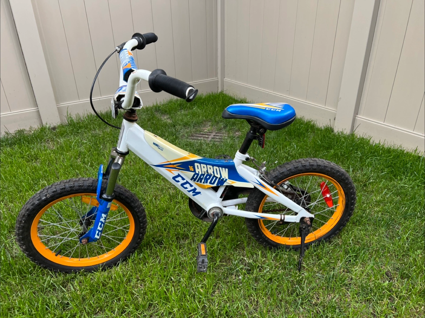 Buy & SellCCM Arrow 16" Kids BikeCCM Arrow 16" Kids Bike$40White, blue, and orange kid's bicycle. Some surface rust spots and plastic yellowing from sun.ConditionGoodWHERE TO MEETMitchell Elementary SchoolView MapSELLERMr SnugglesE Camble534 reviews2 chats·1 favorites·39 viewsSEND CHAT TO SELLERHi Mr Snuggles! I’m interested in your listing.Hi Mr Snuggles! I’m interested in your listing.Get the Karrot app to chatSign In to chat