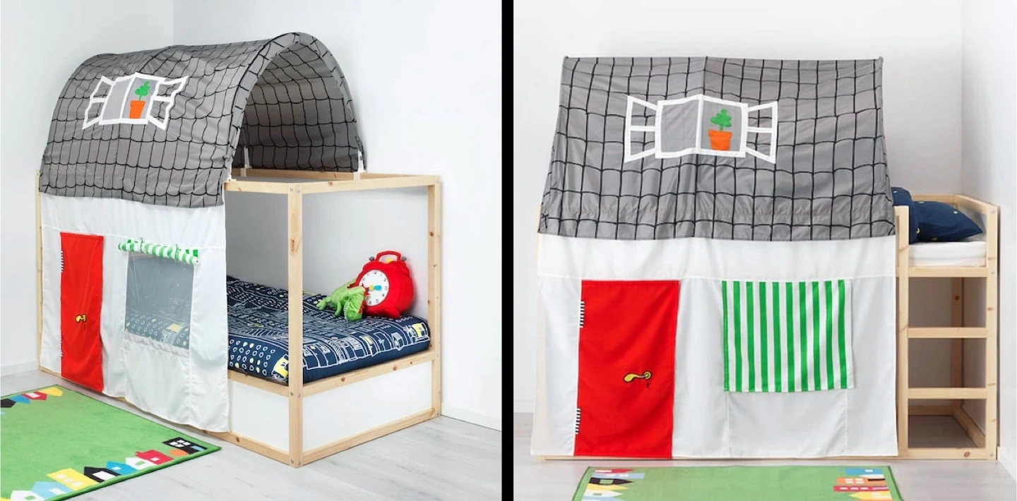 IKEA KURA Kids Bed with House Canopy, Mattress, Duvet & Cover
