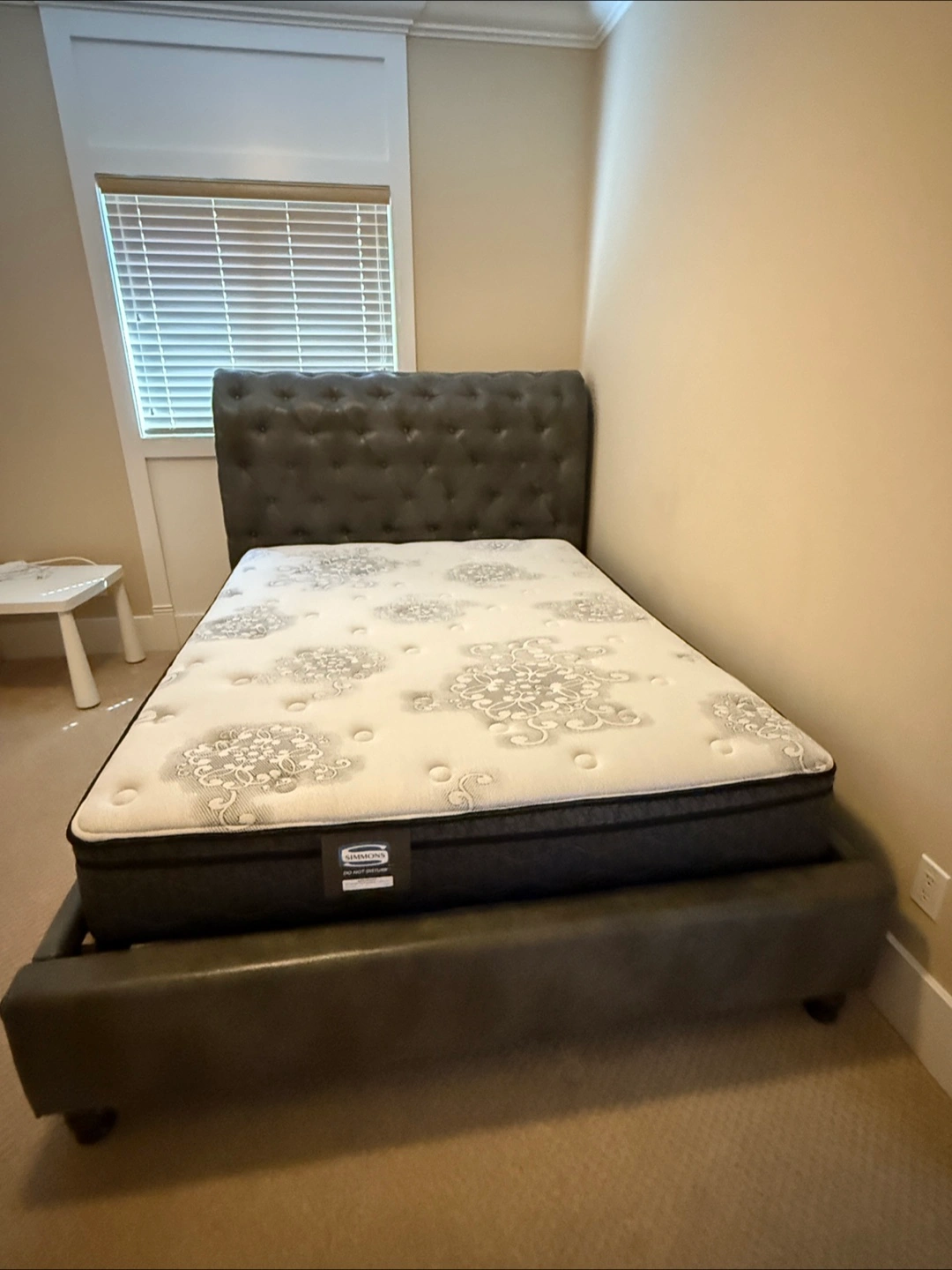 A mattress set perfect for a peaceful sleep. The mattress features a patterned design. The base is dark. It is suitable for a bedroom setup.