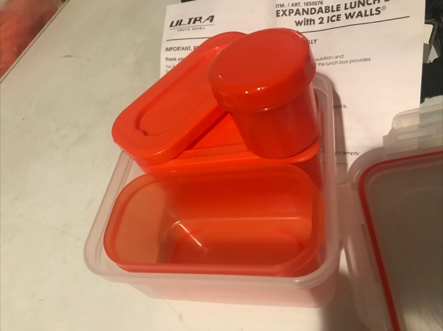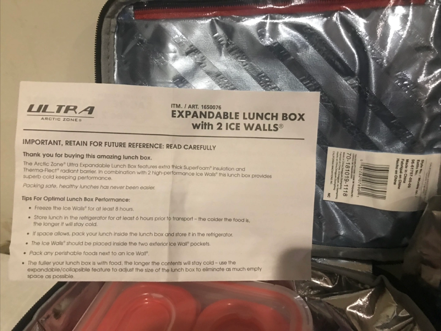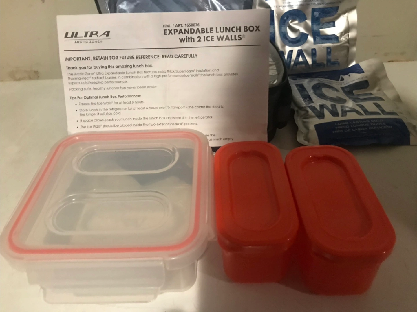 Ultra Artic Zone original expandable lunch box. Portable lunch box with several handles, and compartments. It has four containers with lids that fit inside each other. Also has 2 high performance ice walls. This is a perfect lunch box for every event or outing - school, office, hiking, camping etc. New with tags and unisex. From smoke pet free and healthy home.