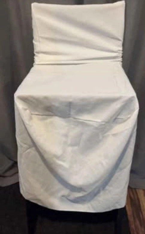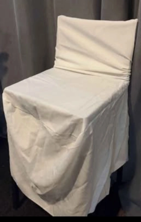 66 Whitr Chair Covers. Length 51inches Top chair width 16inches Front Bottom width 21 inches Side bottom 17 inches. Perfect for weddings,parties or doing rentals $300