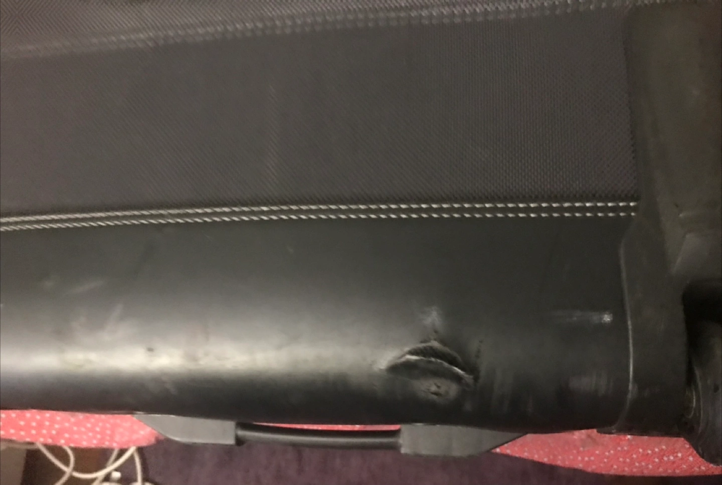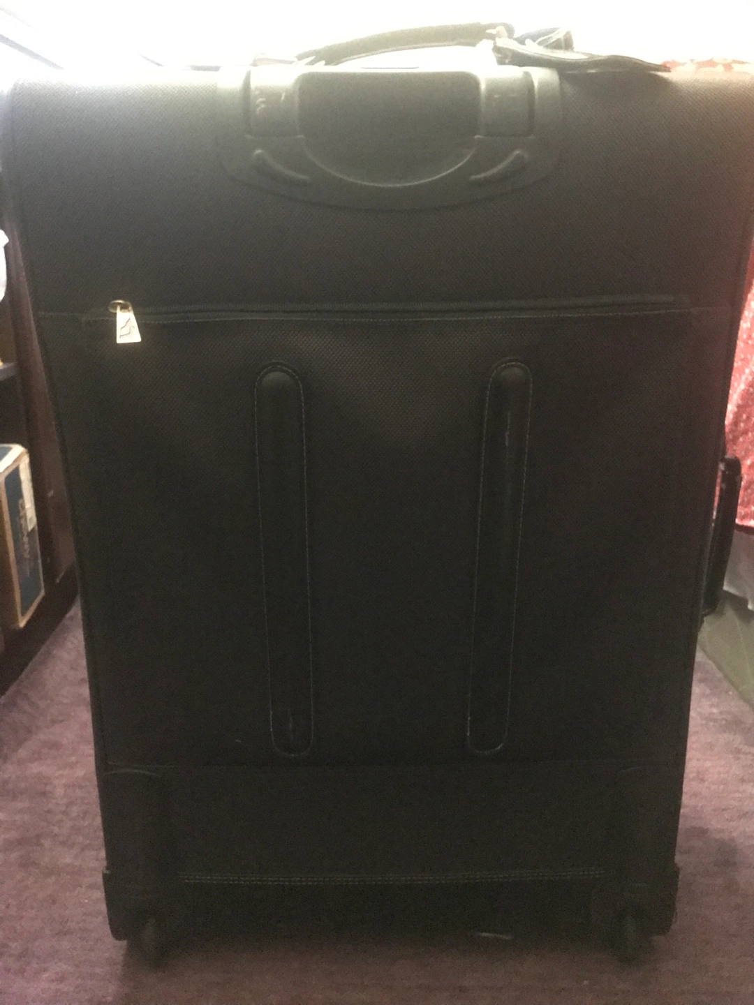 London Fog Oxford style 7000 Gray Large Luggage/Suitcase. An expandable two wheeler luggage. All zippers functions well. Telescopic handle launch with no difficulty. A small rip at the bottom which doesn’t affect its function. Measurement- 27’x20’x9’. In excellent condition and great shape. From smoke pet free and healthy home.