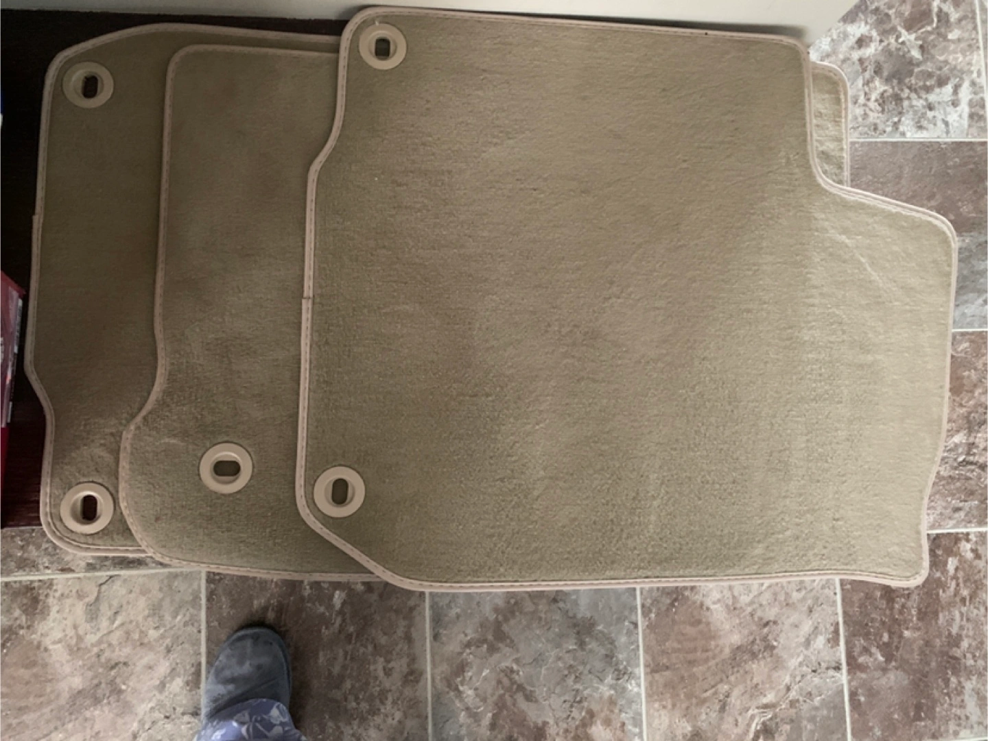 Offering a set of floor mats in a tan colour. Features grommets for securing. These would be great for keeping your car's interior clean, a small investment for your car's longevity.