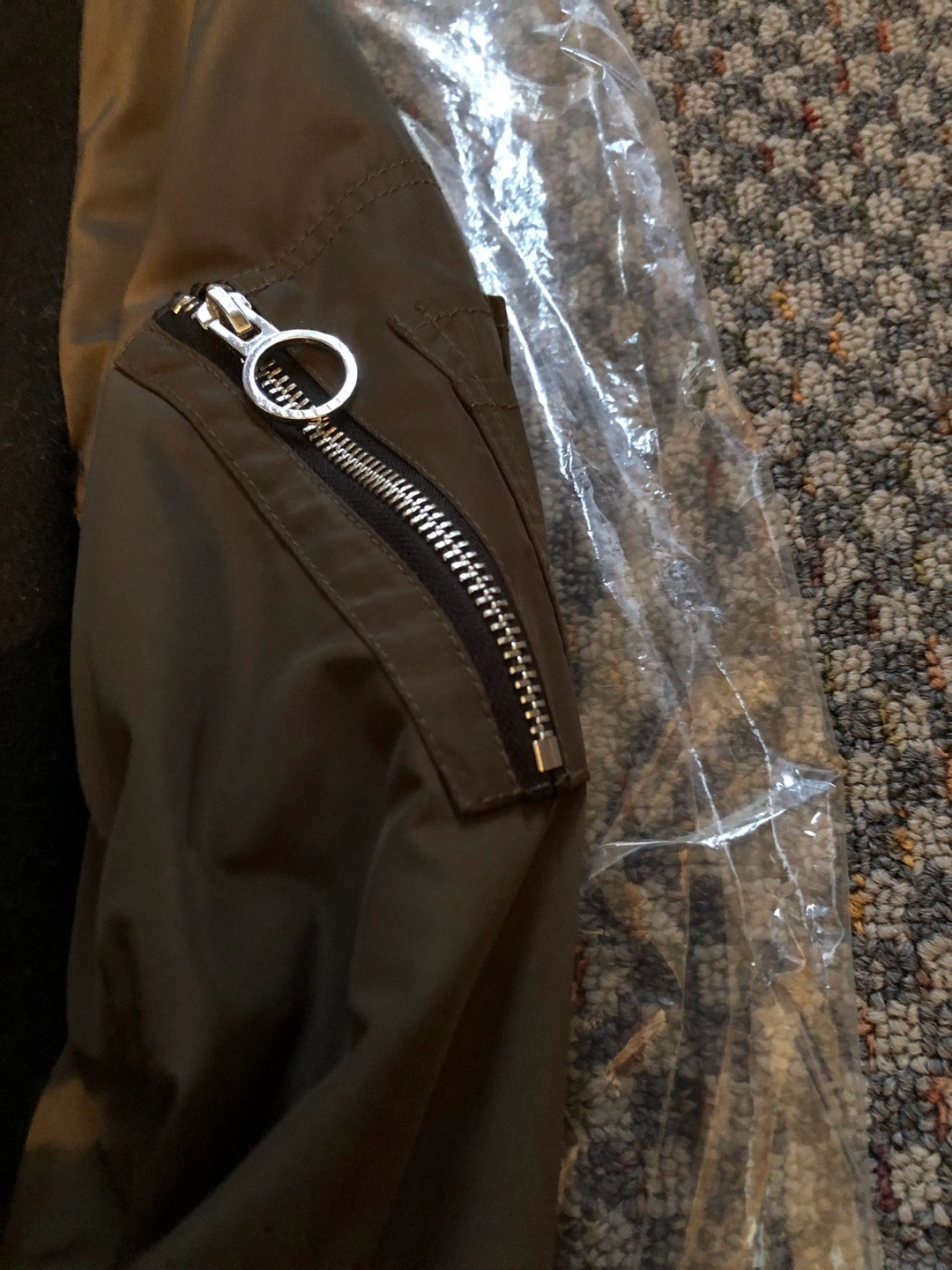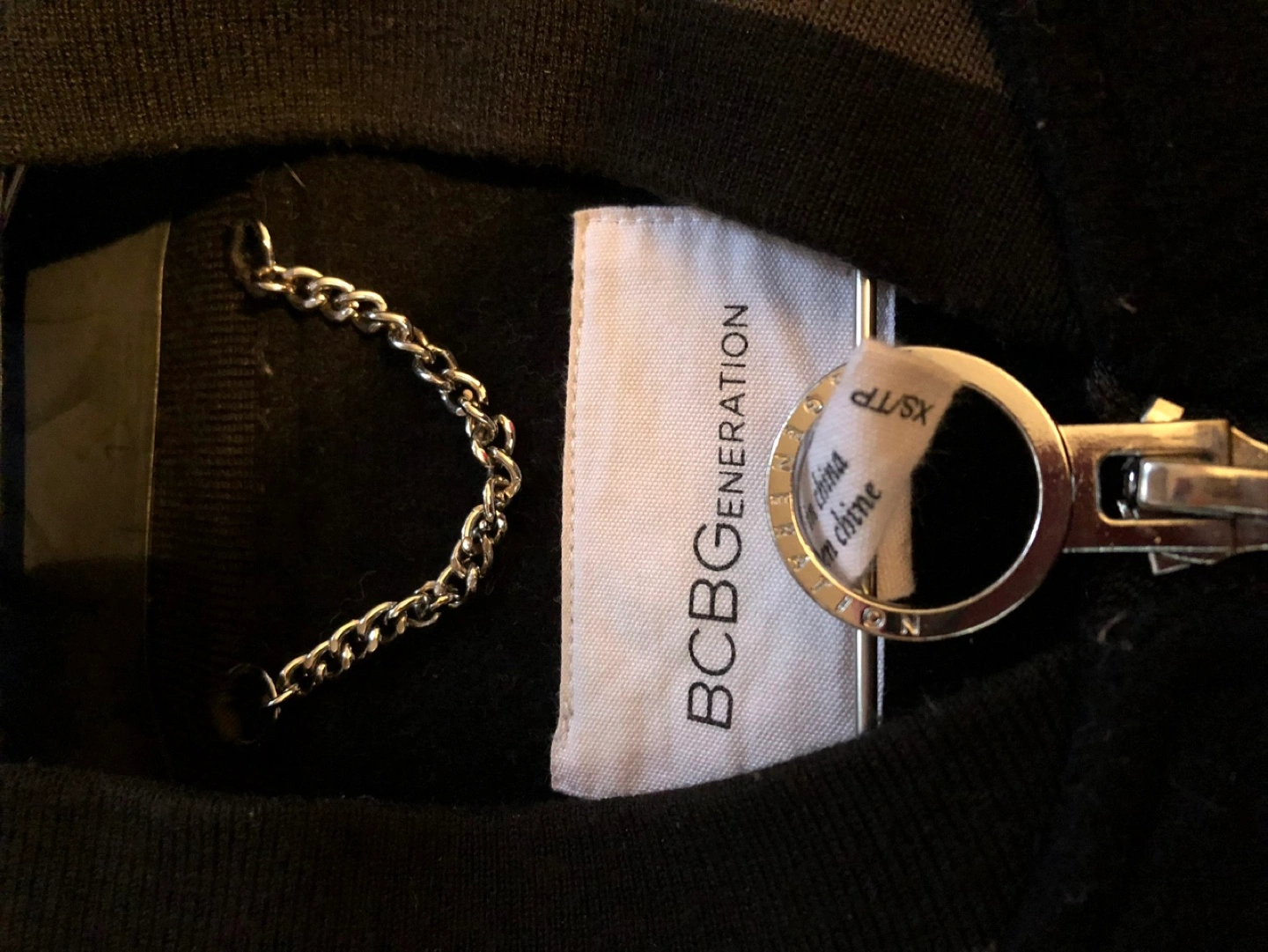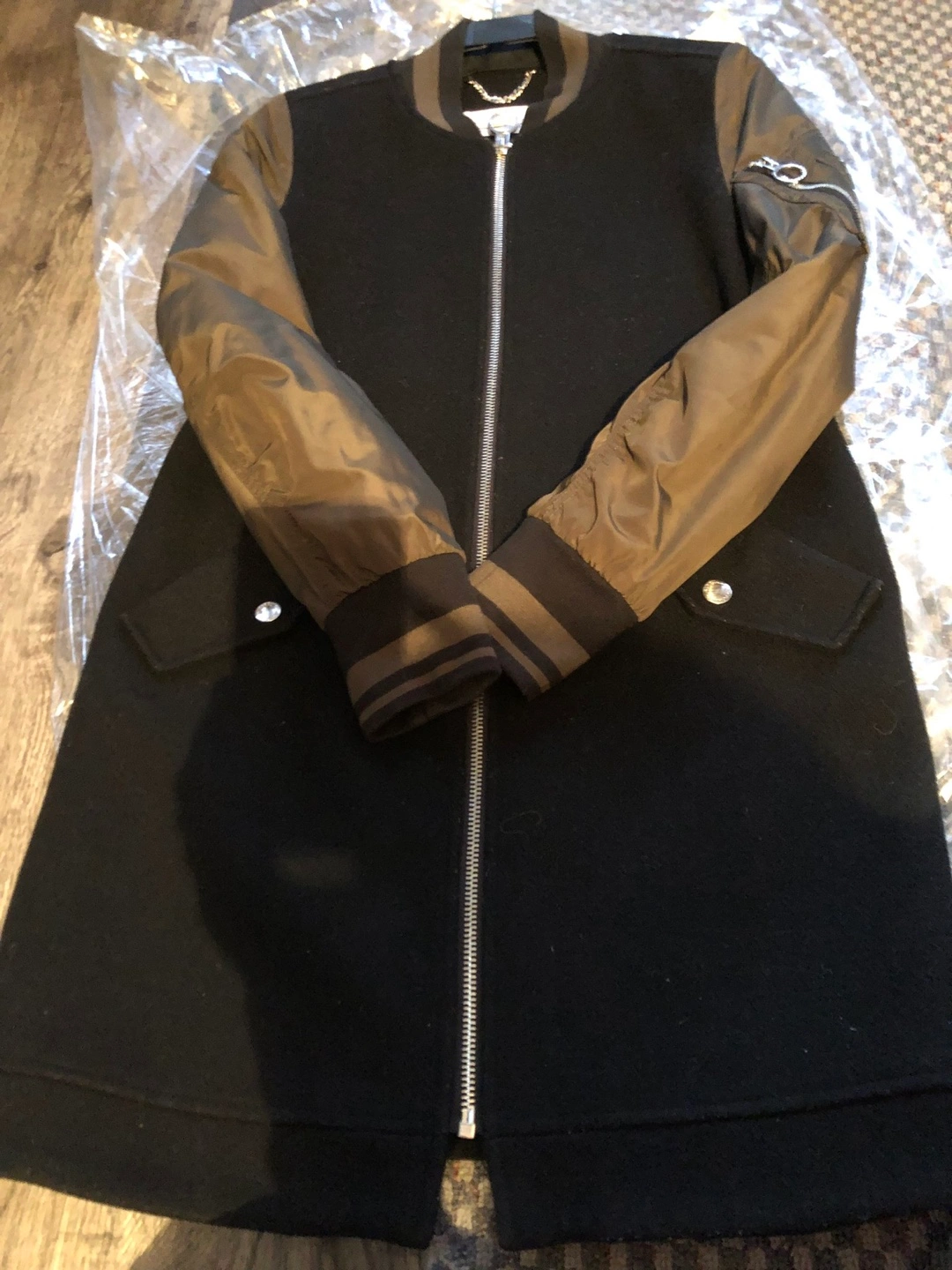 Lovely, thigh-length BCBG zip up jacket! The outer material is wool, and the sleeves are 100% polyester. This is such a nice piece, especially with jeans and any boots. 👌🏽 looks beautiful with turtleneck styles, too. Too big for me, but I just recently got it dry cleaned before posting, so it’s sparkling-clean. Will ship in dry cleaner bag, as well.