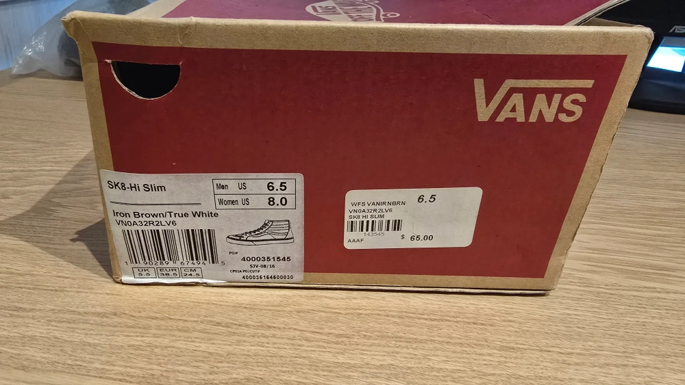 Vans Sk8-Hi Slim Iron Brown/True White Shoes - Size 8