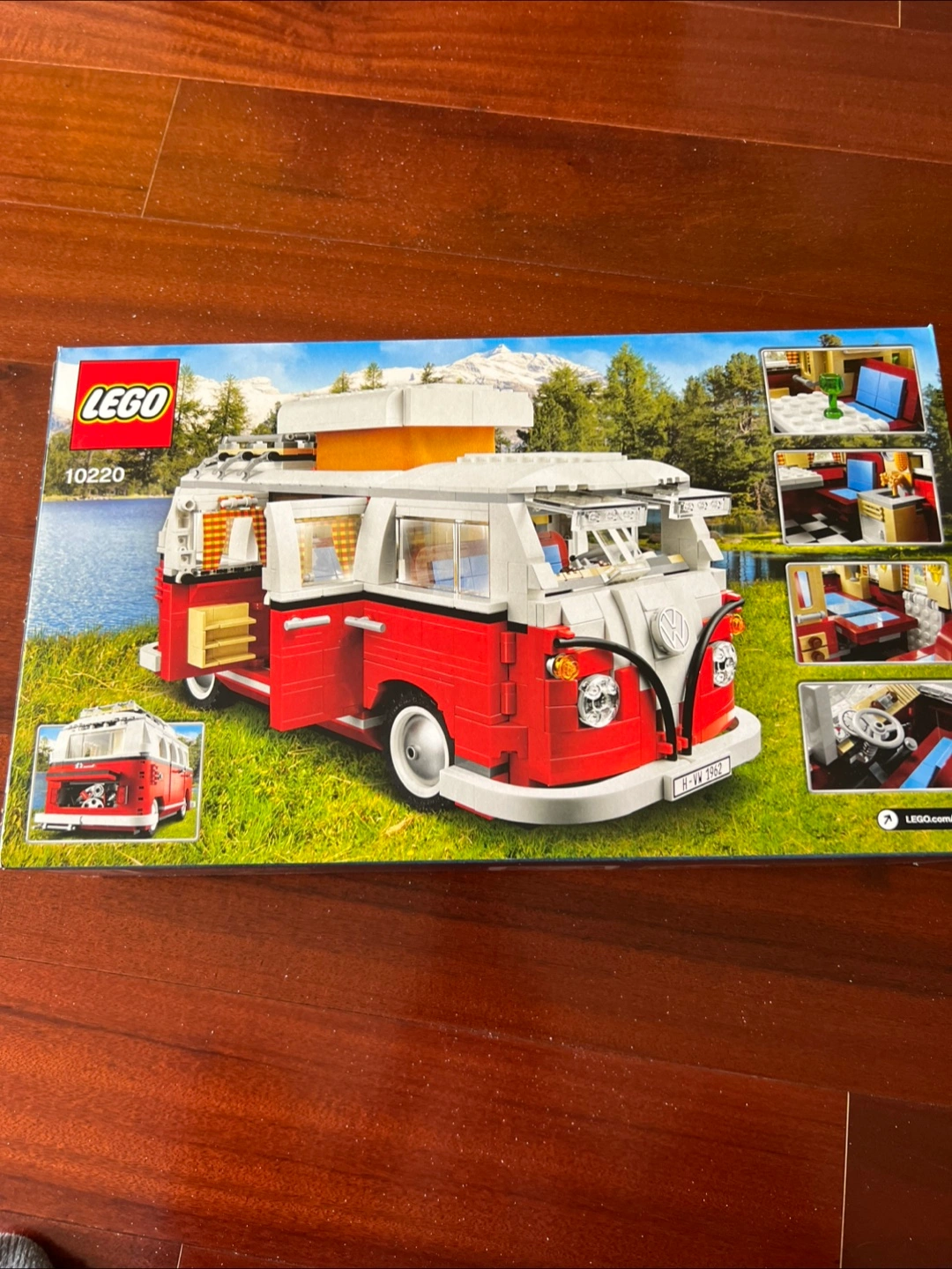 The box shows a red and white Volkswagon T1 camper van. Brand new in the box and very hard to find. Was retired years ago. Building this will let you have a mindful experience. Or will make a perfect gift