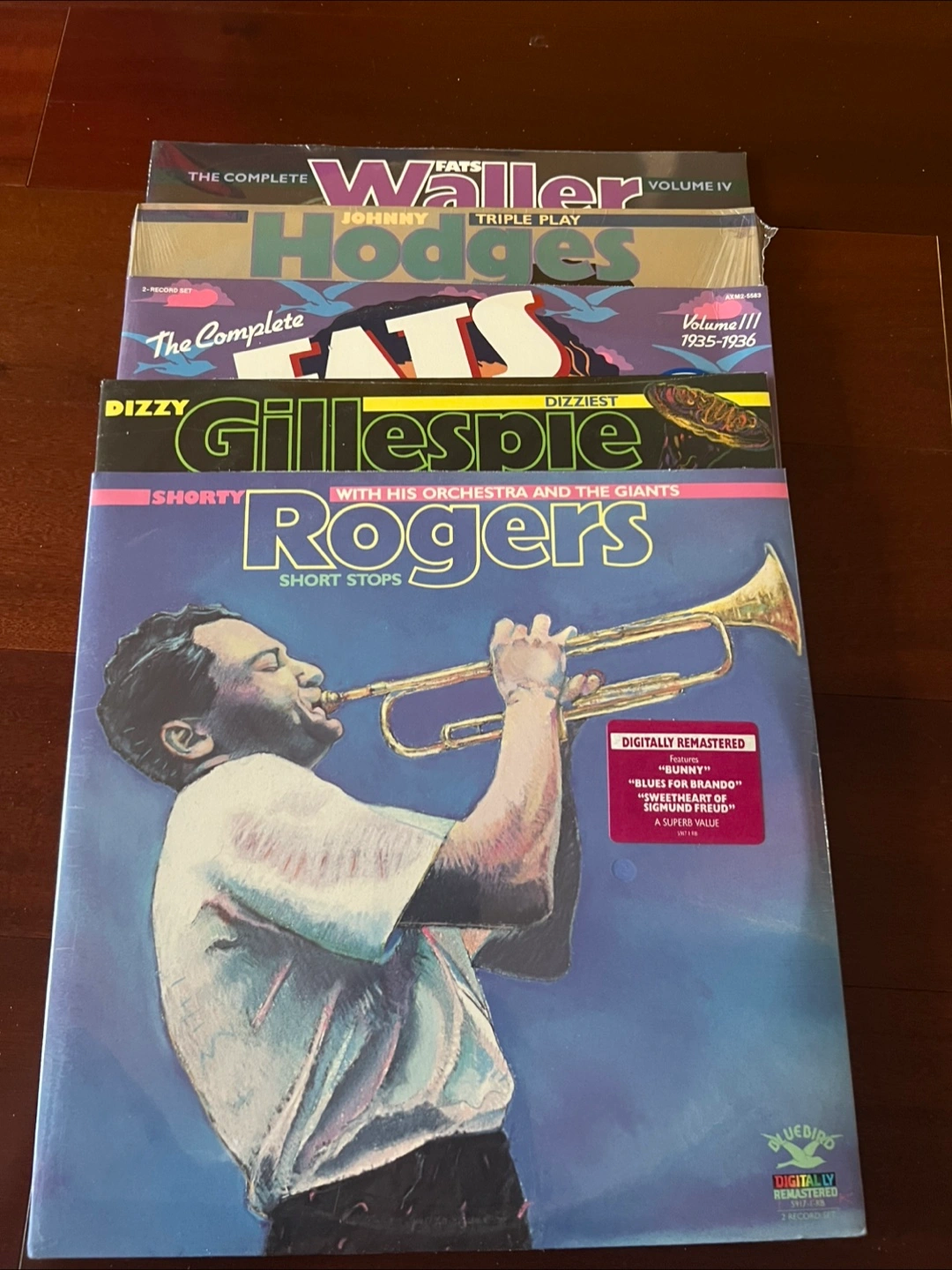 Big band collection of Fats Waller, Johnny Hodges, Shorty Rogers, and Dizzy Gillespie. Set consists 5 albums consisting of 9 brand new never played sealed discs.