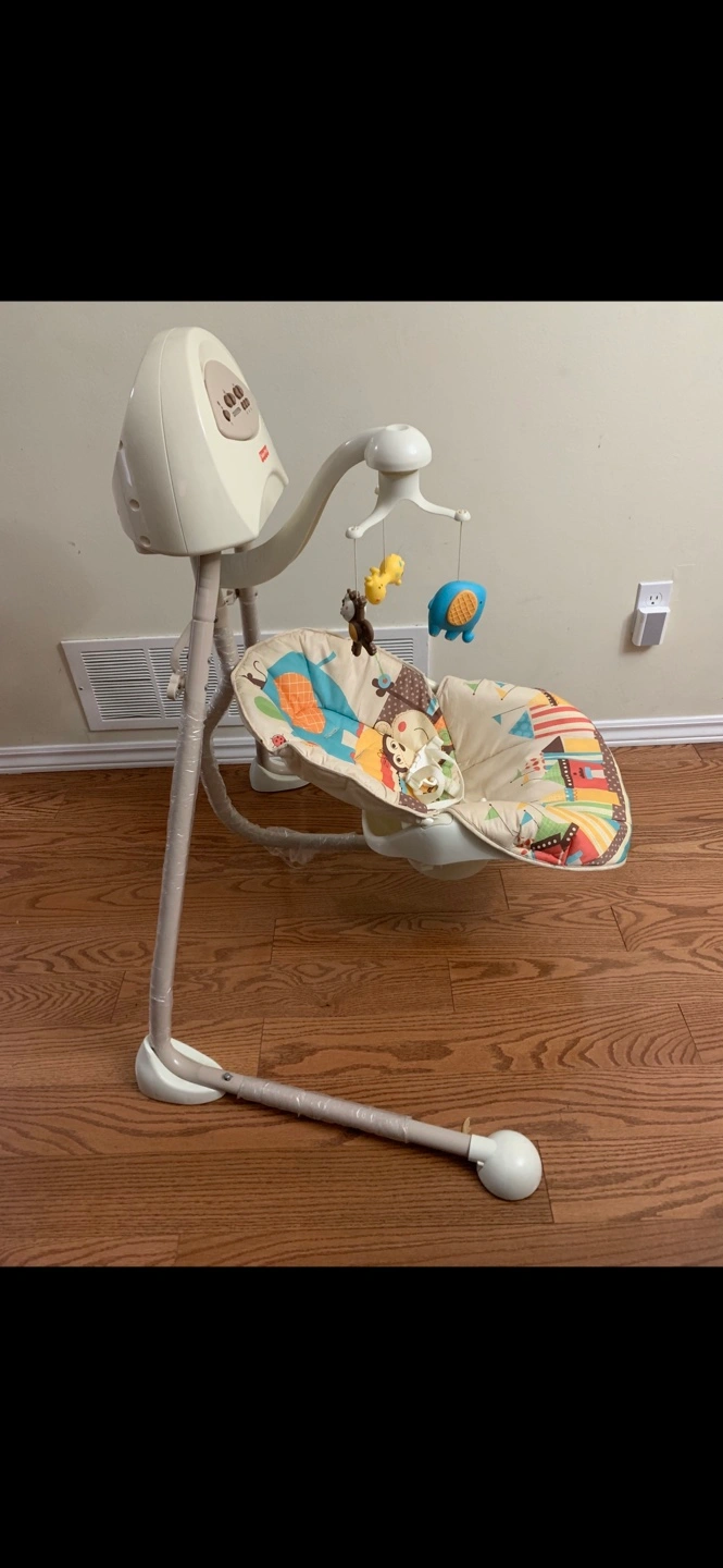 334Swinging Rocking Cradle - Fully Working Swinging Cradle with Hanging Toys Bassinet with hanging toys perfect for your little child to fall asleep in, lay and relax while looking at the hanging toys for amusement and fun until they fall asleep The bassinet can swing back and forth to help give your baby some fun while tiring them out to help them sleep Baby Auto Electric Swing - Fully Working Swinging Bassinet with Hanging Toys Fully Working, Swings the carriage with speed control, Plays relaxing baby music If you want to see a video of it, i can send you one Cheap - message me Can be picked up or delivery