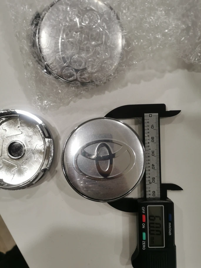 Four Toyota centre hub wheel caps. They are silver colour (not black like one example photo). They fit a wheel opening that's 60mm wide. I bought them for $12, you can have the set for $5.