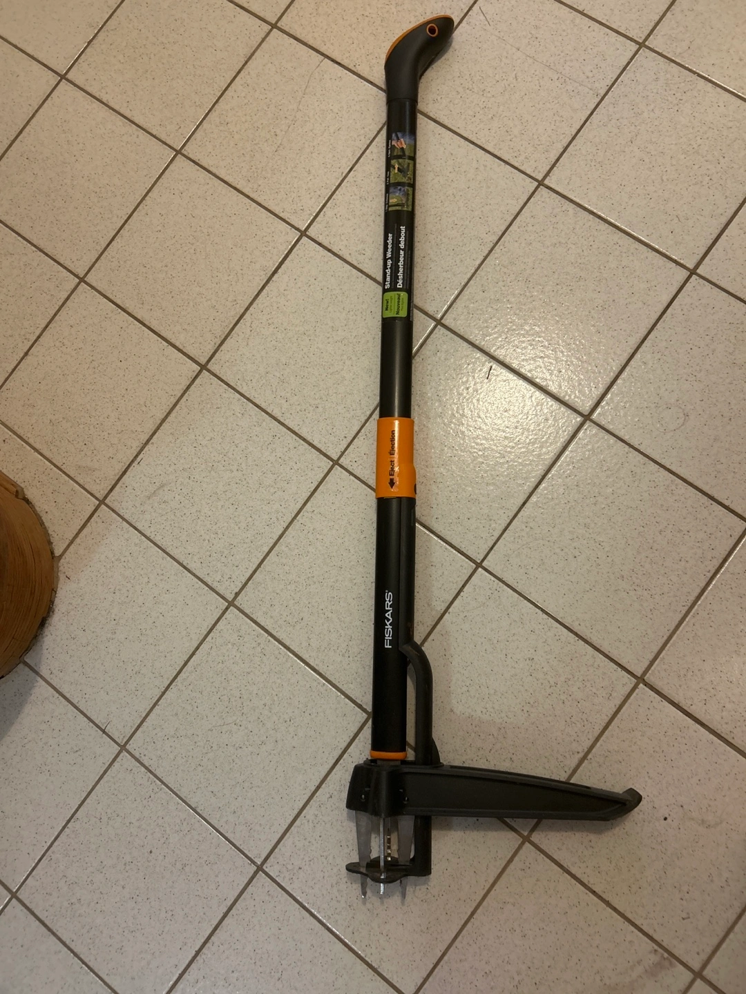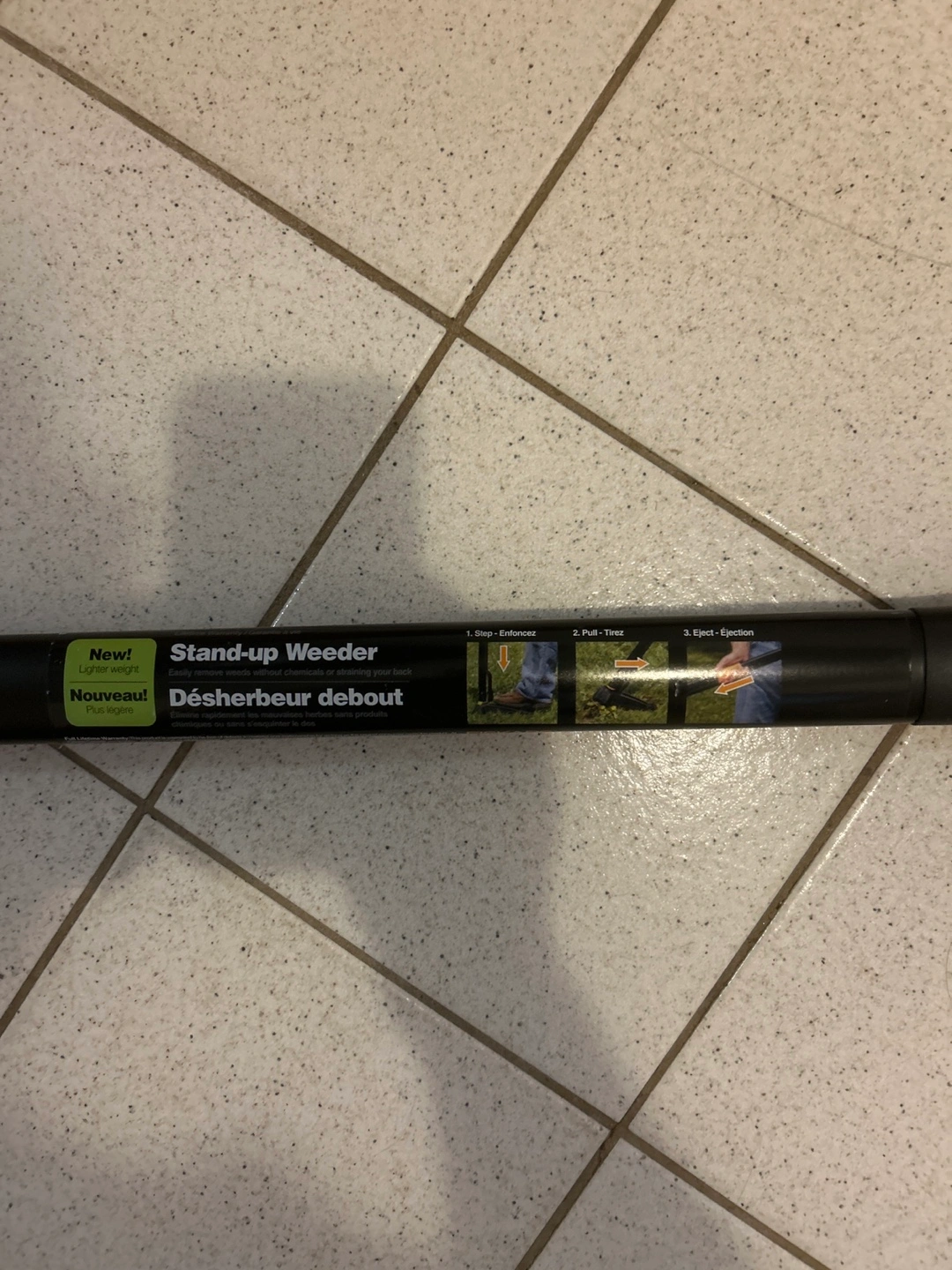 Stand-up weeder for your garden. Has a long, sturdy handle. The weeder makes quick work of pesky weeds without using any chemicals. Gardening can be a therapeutic hobby.