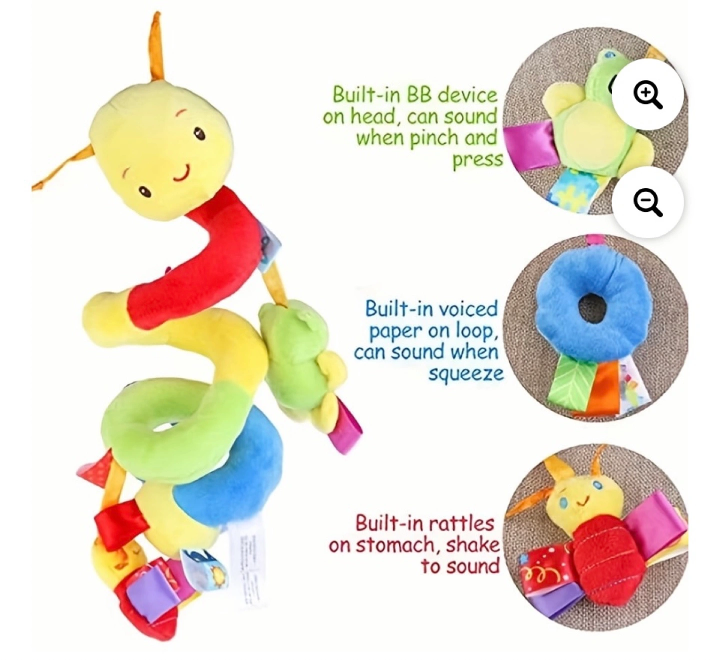 New Baby Hanging Rattles Toys Car Seat Toy Soft Mobiles Stroller Crib Cot Spiral Toy