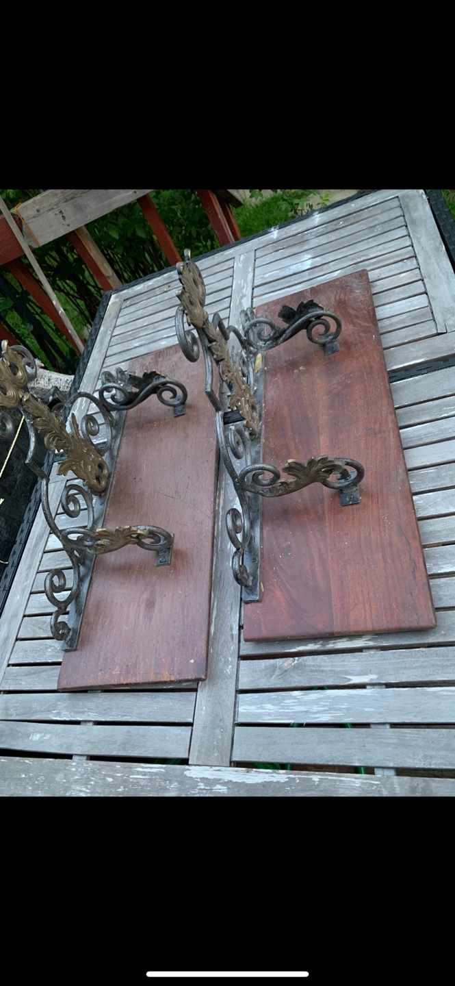 3482 Piece Antique Dark wood Shelves and Horse Books Stand 2 Piece Antique Dark wood Shelves with Gold embroidery and a matching Horse themed books stand Beautiful antique dark wood shelves with beautiful artistic designs. Gold embroidery designs mixed with black and rich dark wood Comes with both shelves and the horse book stand The horse book stand is used to hold books, paper, magazines, binders, notebooks up without falling down Cheap - message me Can pick up or delivery