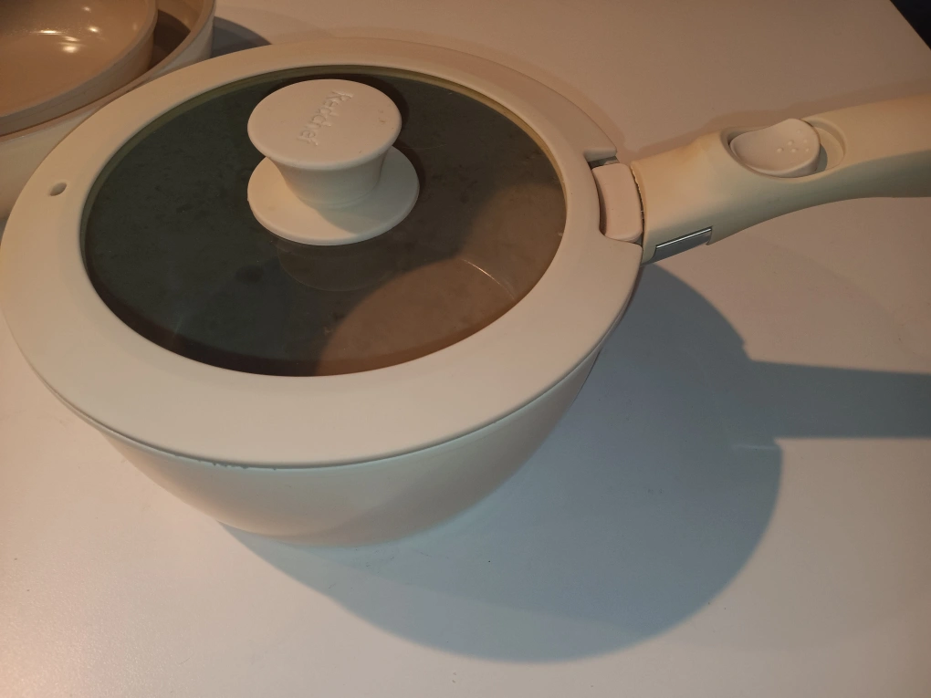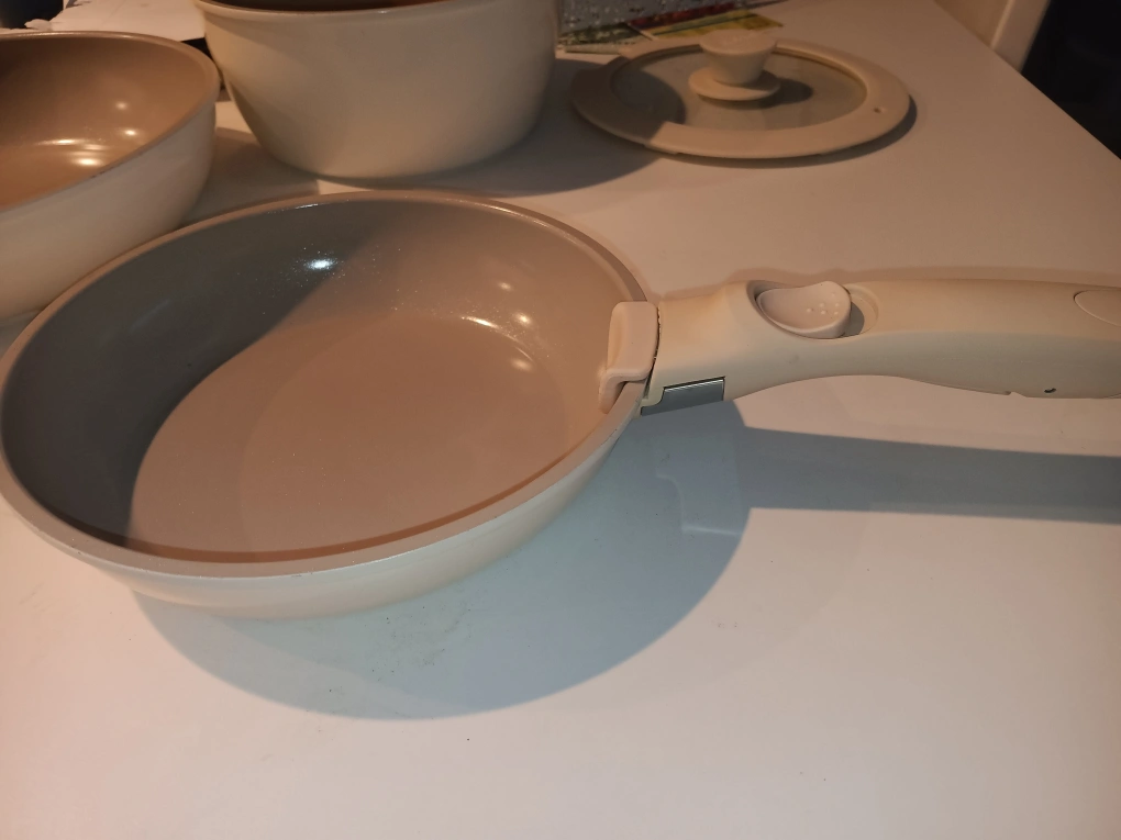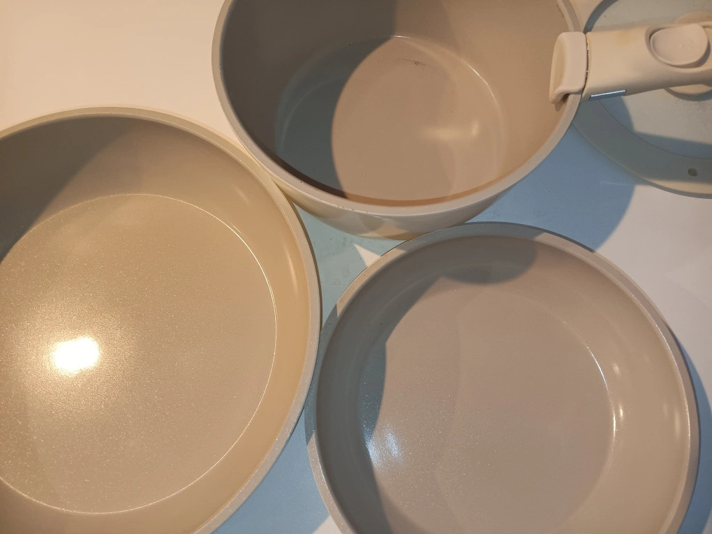 754The set includes different sized pots and pans with a lid. The cream-colored set looks quite elegant. This cookware will provide a soothing experience while you cook your favorite meals.