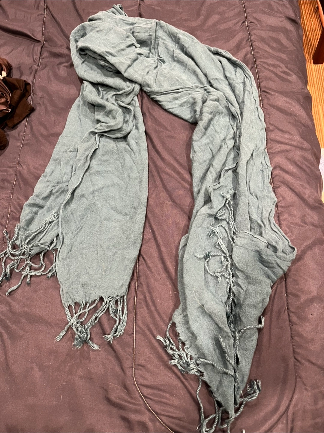 A nice selection of scarves for your wardrobe. One scarf has a print of penguins. Another one is adorned with owls. A third scarf is an solid colour with a fringe. Try these scarves for a great pop of colour.