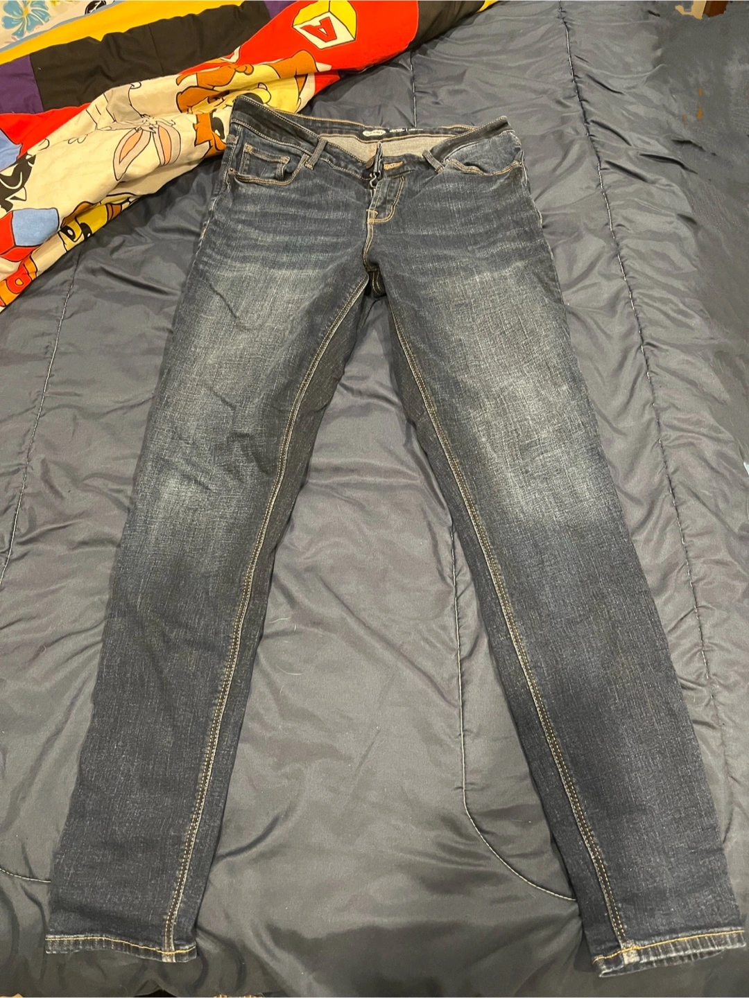 Dark wash jeans. Super skinny fit. Mid-rise. Great to pair with your favourite t-shirt.