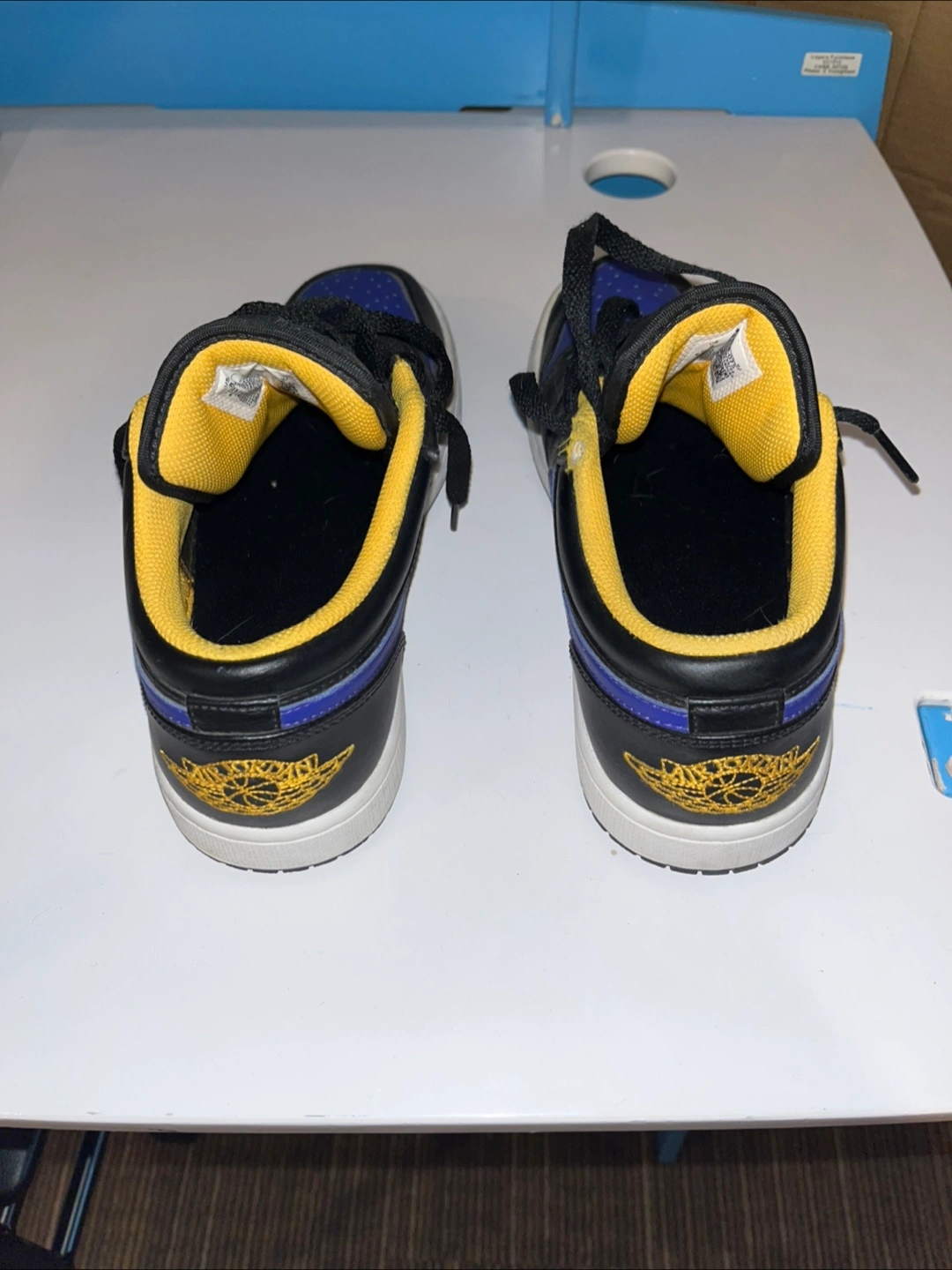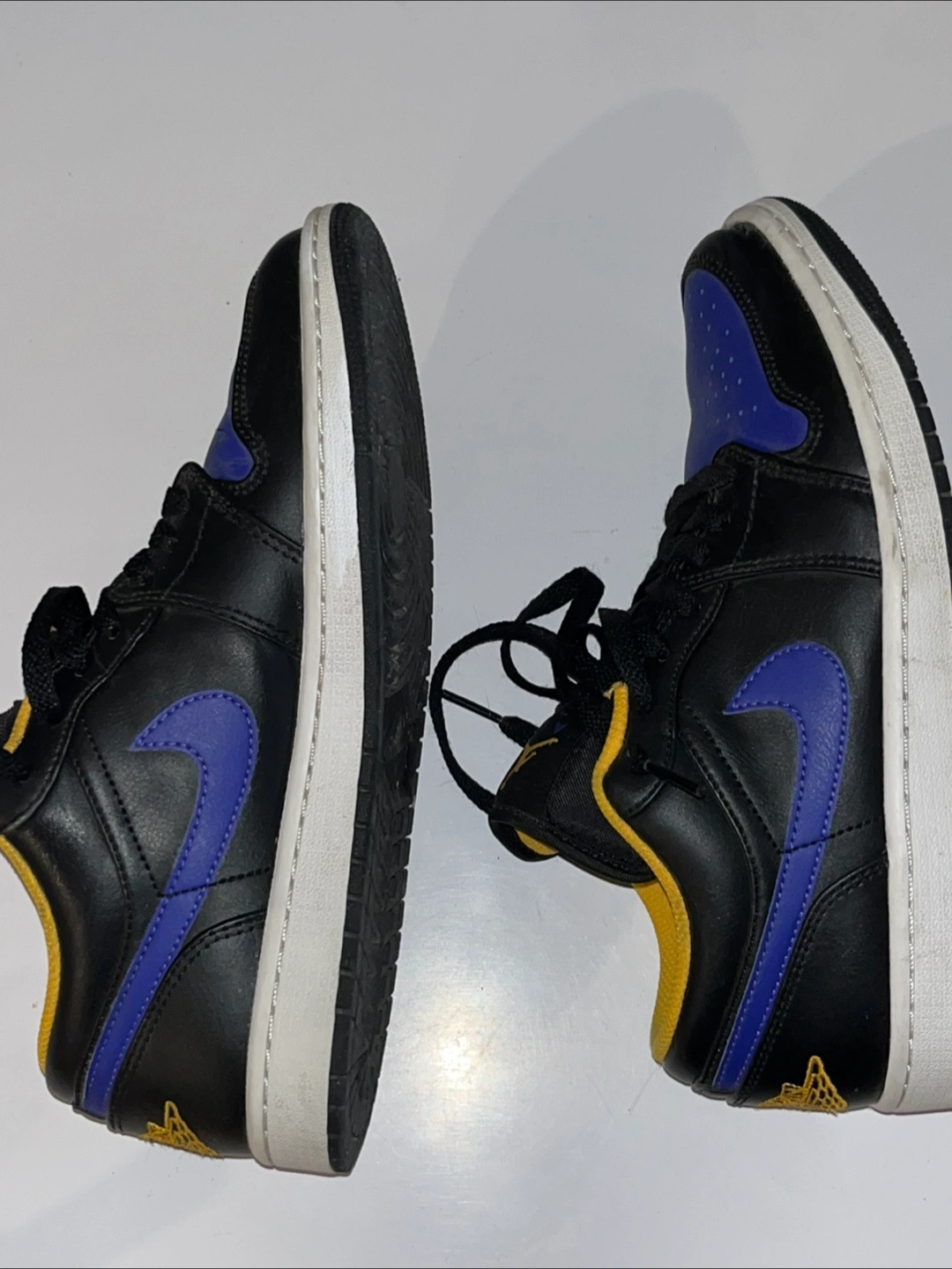 Sneakers in black and purple colourway. Features the iconic swoosh. Pair of sneakers with yellow accents. A great item for looking stylish, wherever you may be.