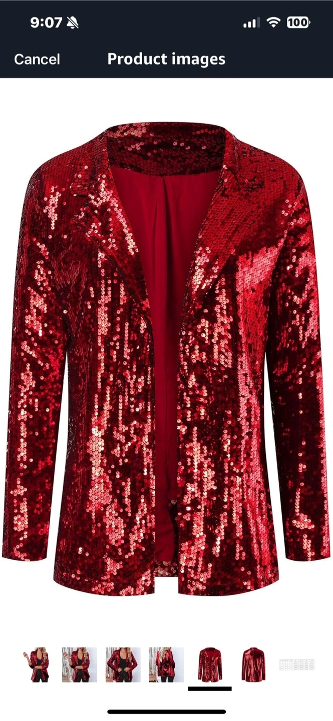 A stunning red blazer. Features sequins, long sleeves. The perfect addition to elevate any outfit, making it the ultimate statement piece.