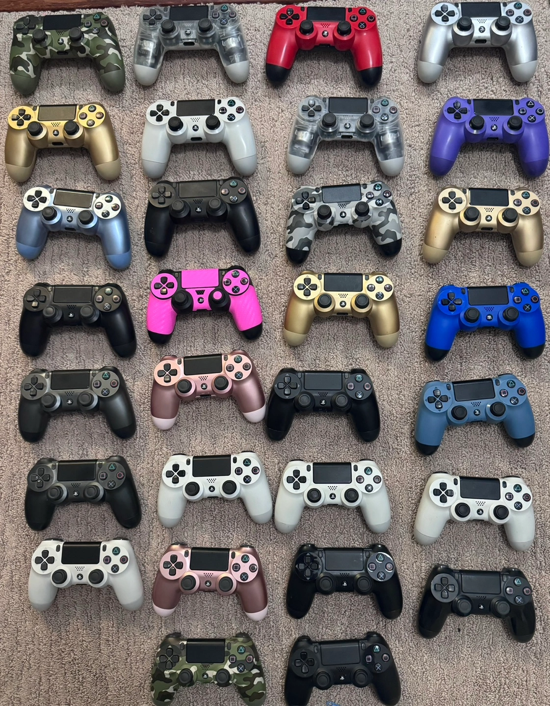 A selection of various coloured ps4 controllers. Offering a variety of colours and designs. A perfect option for a cozy night in.