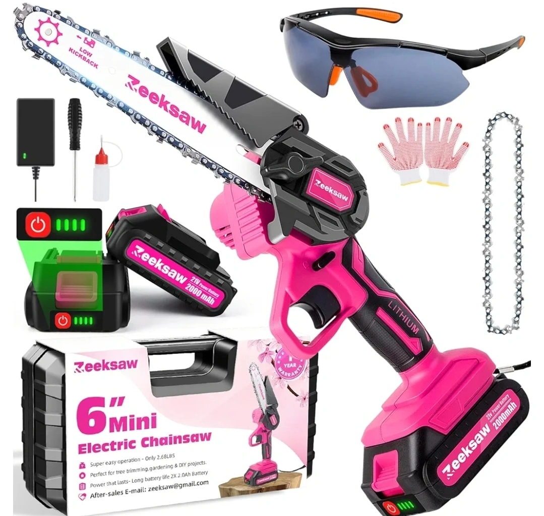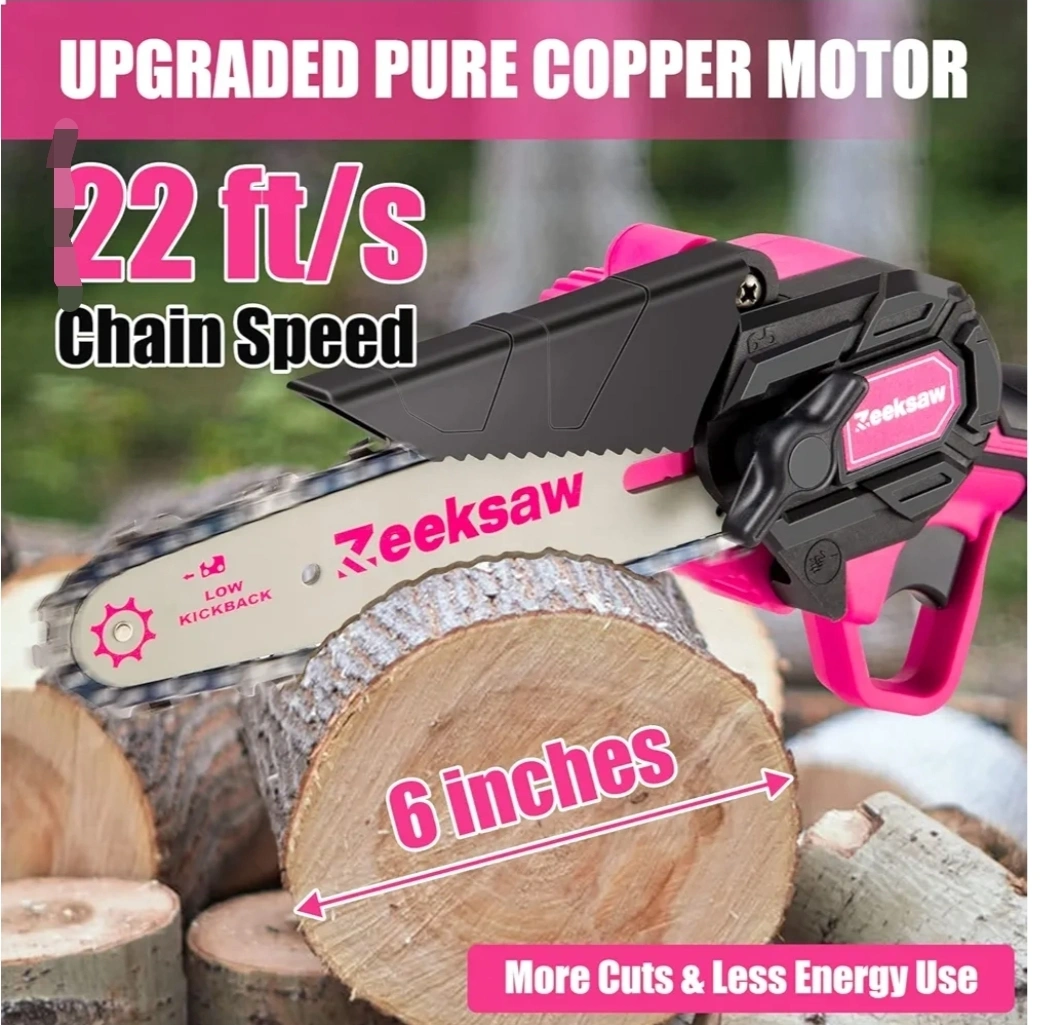 Zeeksaw 6" Mini Electric Chainsaw with Battery and Accessories