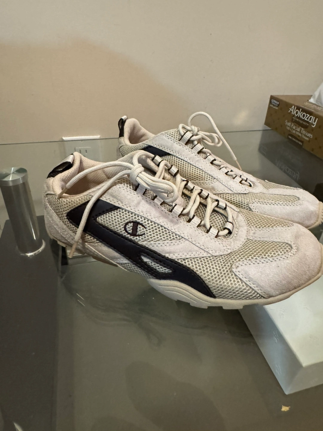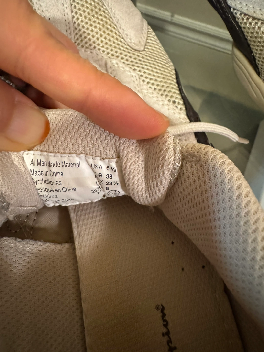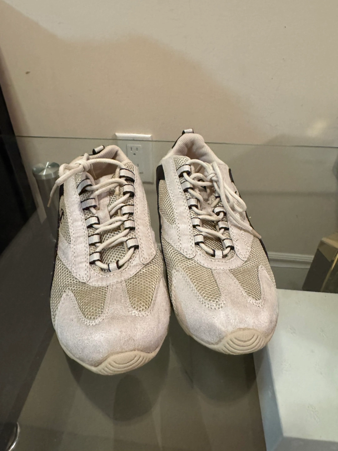 Sneakers, featuring mesh fabric. With white shoelaces and a black accent design on the sides. Perfect for a pleasant walk in the park.