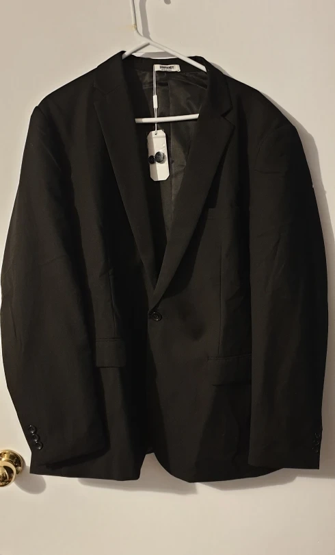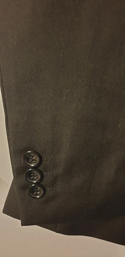 A classic black blazer for men. Features buttoned cuffs and pockets. Single breasted with a button closure. Would make you feel incredibly relaxed, wearing this blazer. Cash only please. mens suit jacket sleeve 26 1/4" arm pit to arm pit Laid flat 25" , waist laid flat 23", collar to hem 31.5"