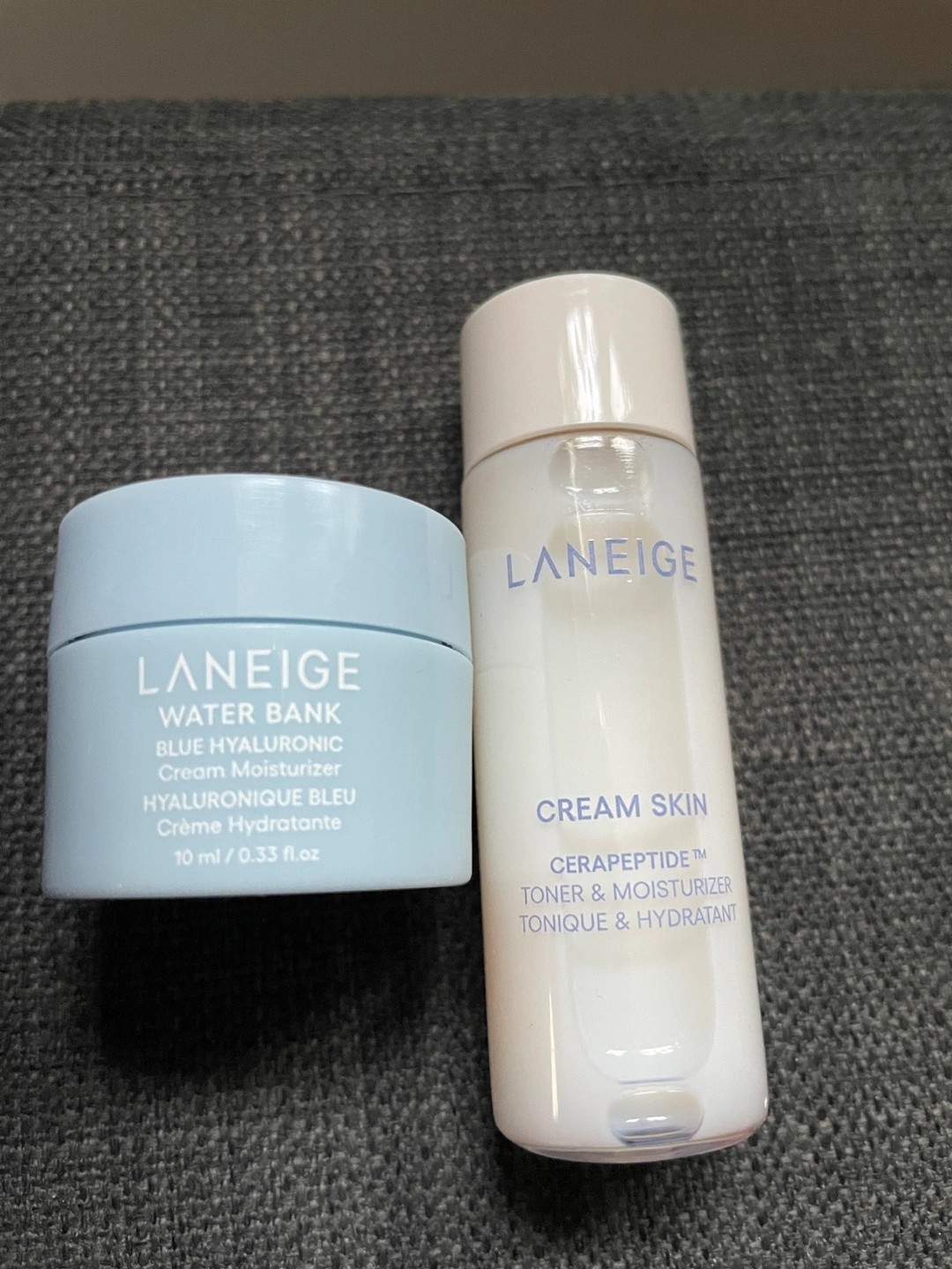 A set of two skincare products. One is a blue hyaluronic cream moisturizer. The other is a cream skin toner and moisturizer. These products can contribute to a soothing skincare routine.