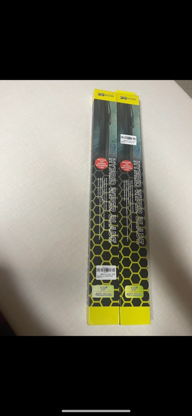 Fresh, unused wiper blades. These would be great for your next road trip to ensure a clear view ahead. They are in their original packaging and feature an interesting honeycomb pattern.