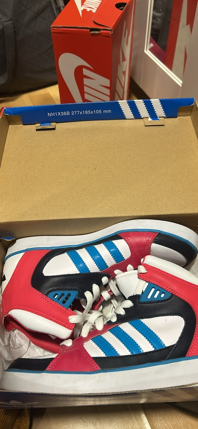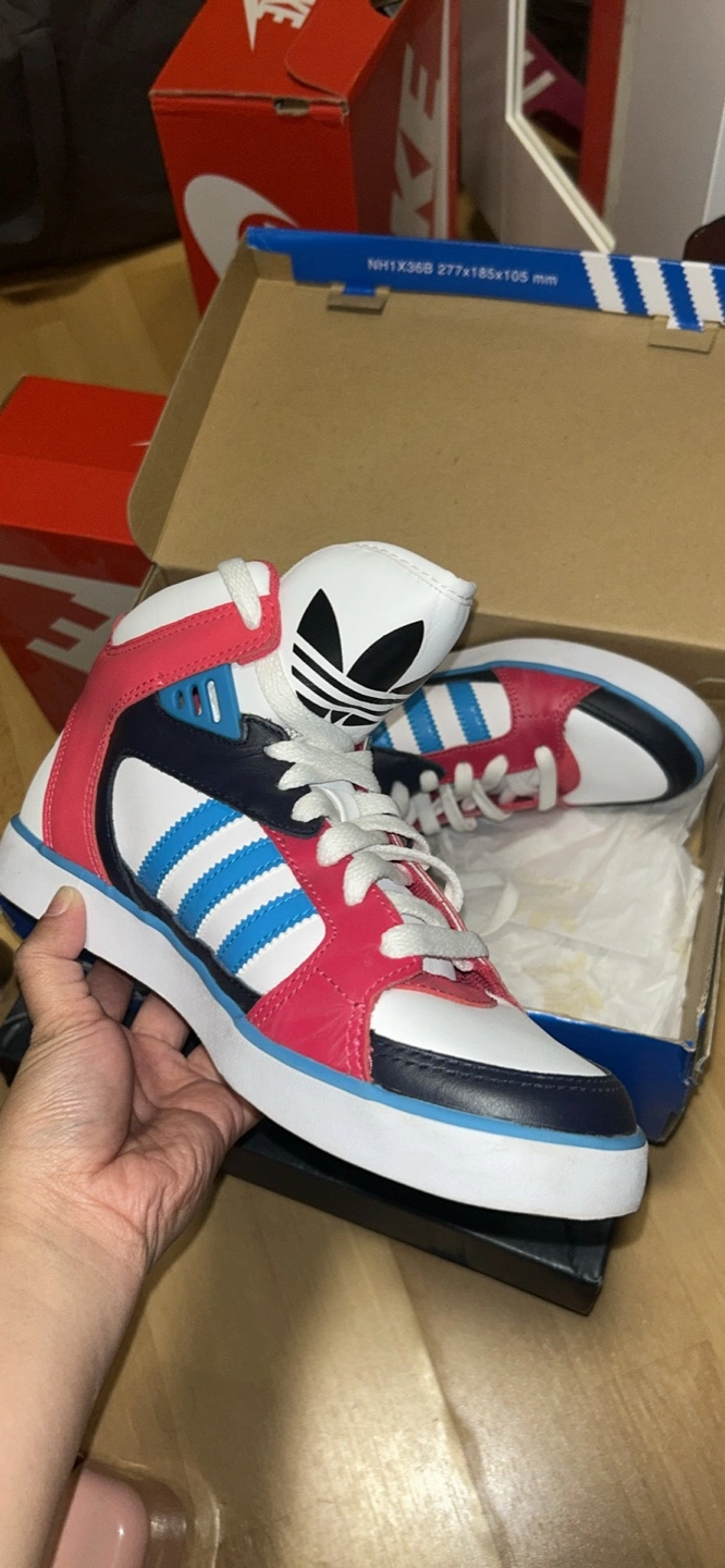 Stylish high-top sneakers. The shoe features a bold colour scheme. A classic design with the brand's iconic stripes. Imagine how comfortable these would be to wear around town after a long day.