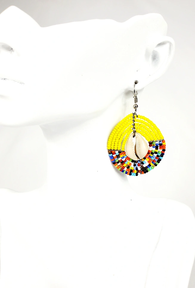 665These eye-catching yellow earrings are handcrafted with colorful beads and adorned with cowrie shell will add a unique touch to any outfit. They would look lovely with your favourite sundress. In Africa, cowrie shells symbolize a multitude of concepts, including wealth, fertility, prosperity, and spiritual protection. They were once used as currency and continue to be valued for their beauty and cultural significance. Cash only π° Open to negotiation when purchasing multiple items π£ Available Thursdays, Fridays and Saturdays π Meet at Dundas West station π Looking forward to meeting you π βοΈ βοΈ βοΈ Please note that the color of products may vary slightly depending on lighting and that each piece of jewelry is handmade and unique, so some minor variations may differ from the image.