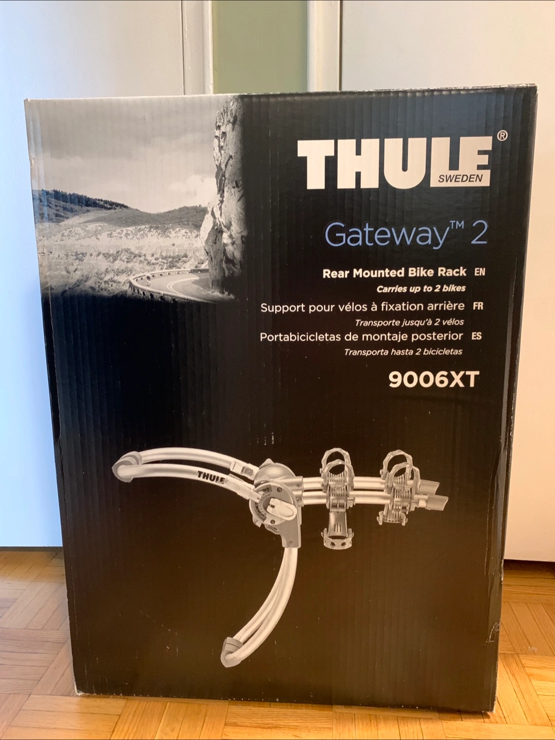 THULE Gateway 2 Rear Mounted Bike Rack (9006XT)- Here is a two-bike rack, perfect for your weekend adventures. It features a sturdy, metallic frame, with various straps to secure it to the car. It includes cradles to hold the bikes.