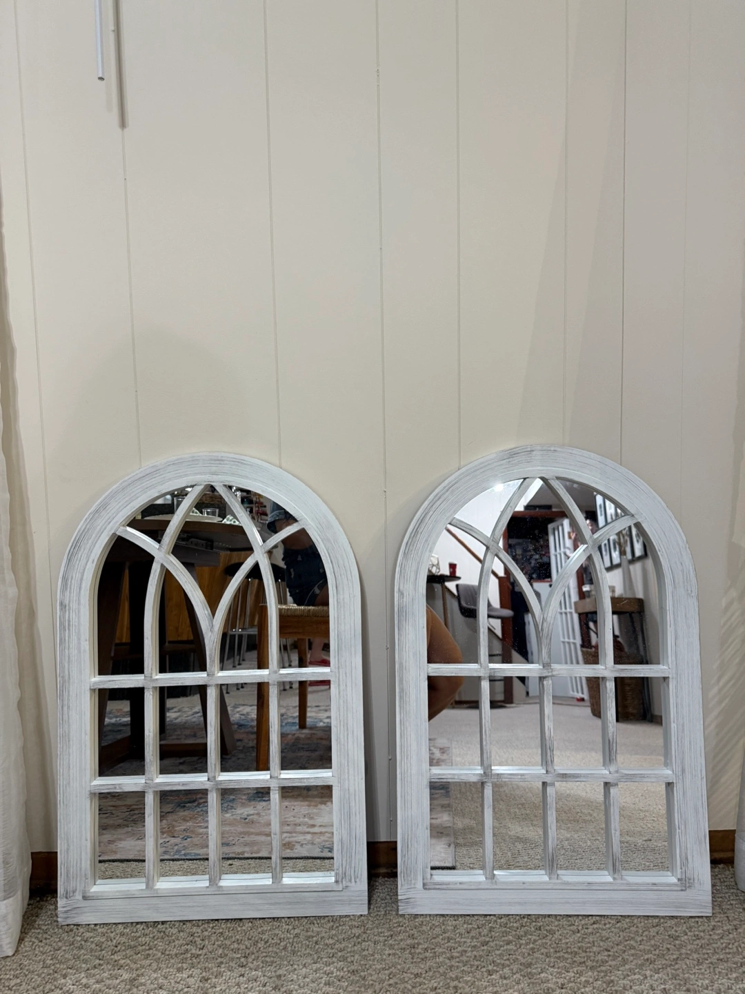 These mirrors are window-shaped, a fantastic way to bring a feeling of serenity into your space. They feature a distressed white finish. Perfect for a hallway or living room.