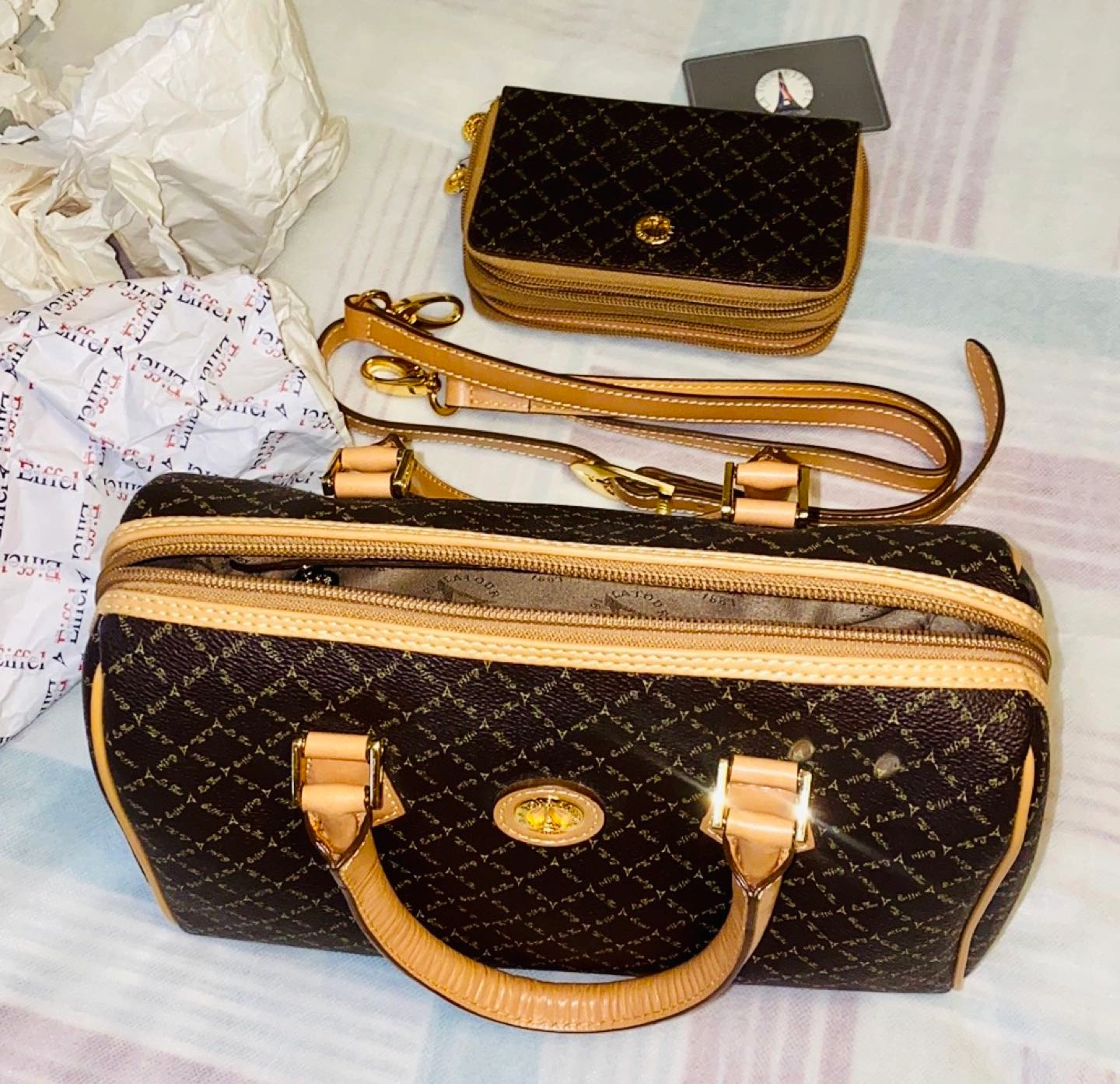 949Genuine Leather beautiful brand new bag and wallet La Tour Eiffel, made in USA