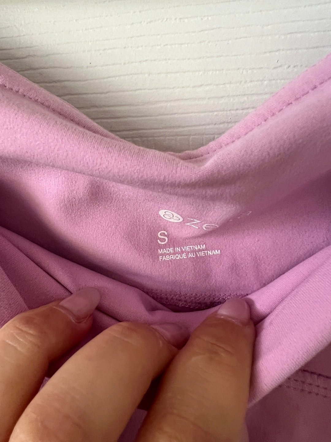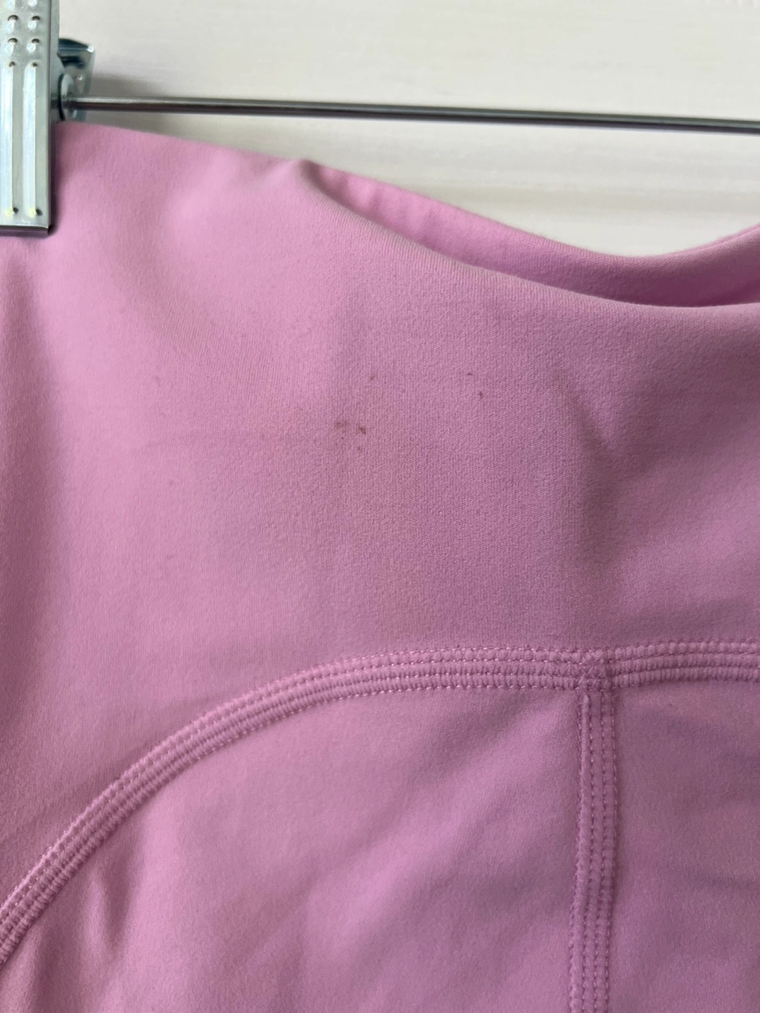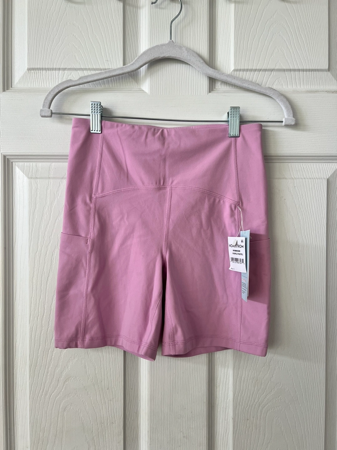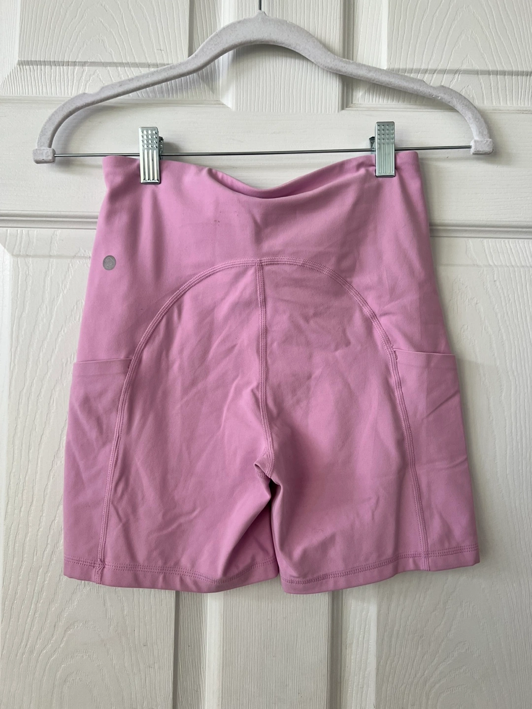 96These yoga shorts feature pockets and the brand's logo. They are a beautiful light purple colour. You could get cozy at home in them after a long day.