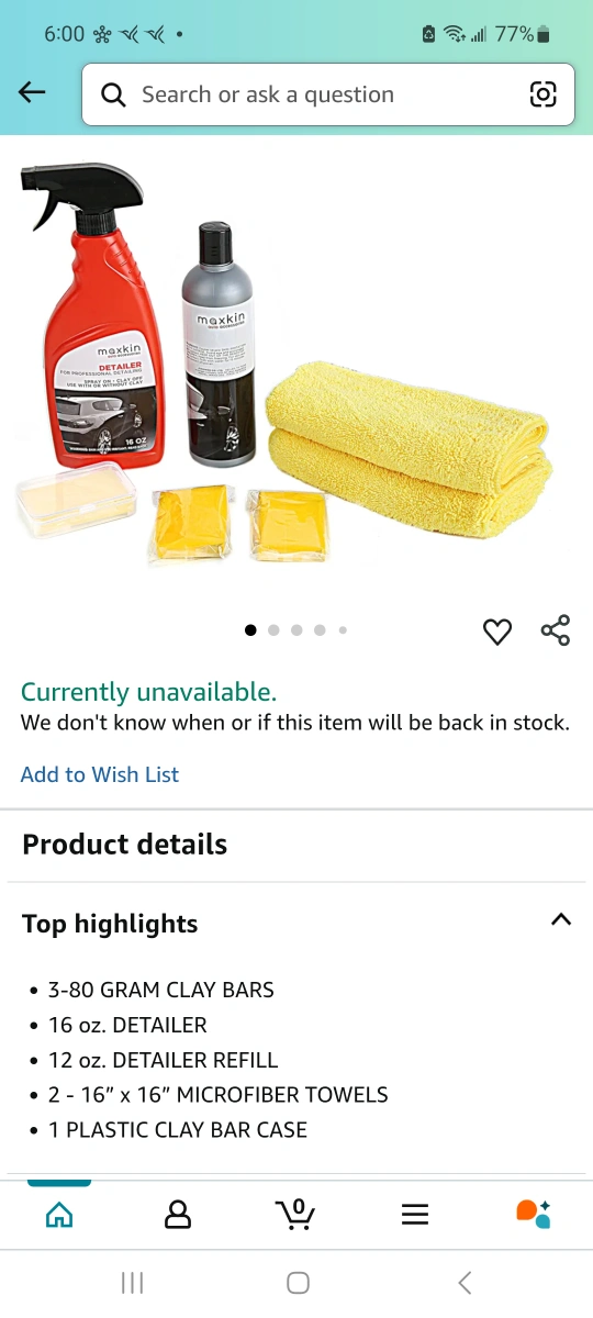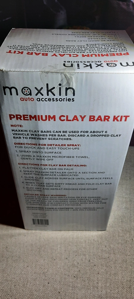 Includes clay bars, detailer, and microfiber towels. A great way to rejuvenate your vehicle's finish.